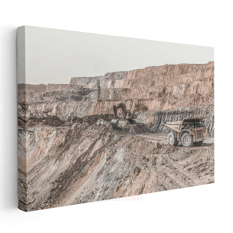 Maden Kamyonu ve İş Makinesi - Endüstriyel Taşıt Manzarası Kanvas Tablo