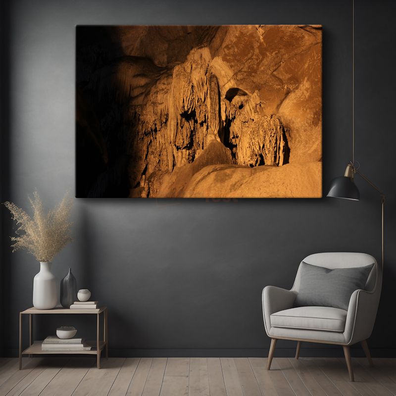 Mağara Hazinesi - Altın Tonlarında Kaya Oluşumları Kanvas Tablo