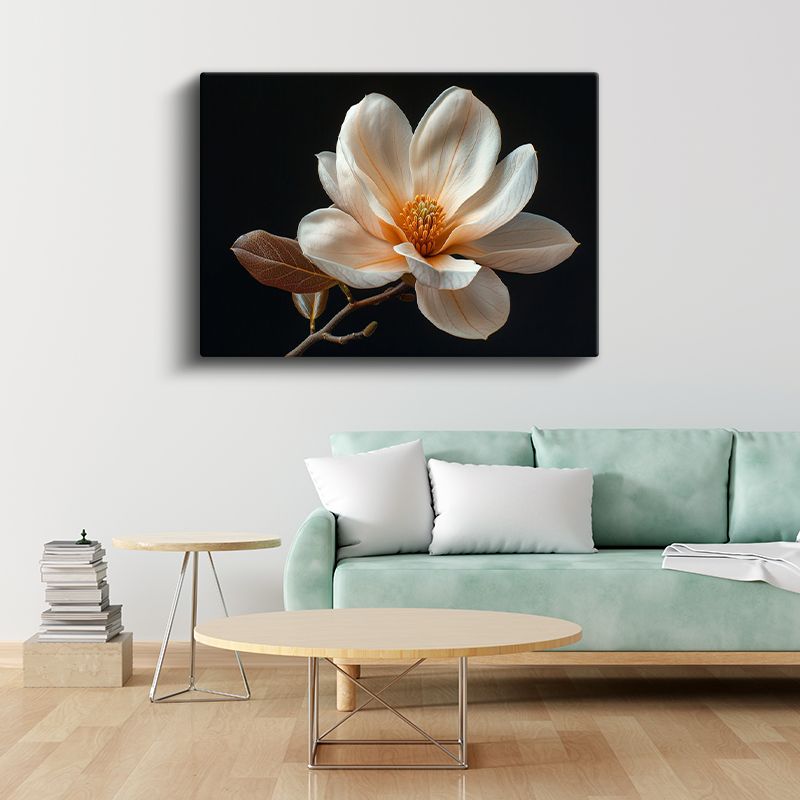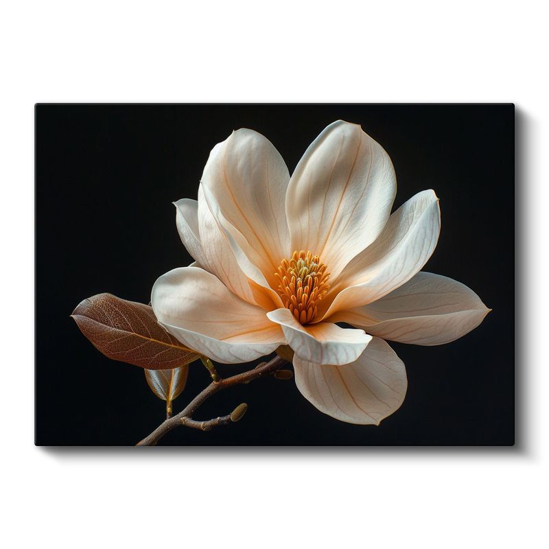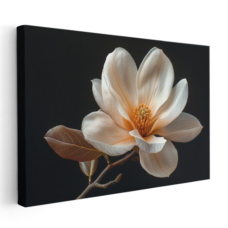 Magnolya Çiçeği - Siyah Zeminde Detaylı Botanik İllüstrasyon Kanvas Tablo