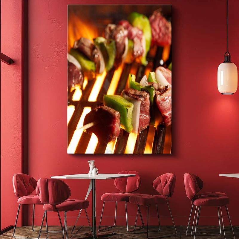 Mangal Şöleni - Ateşte Pişen Et Şişleri Kanvas Tablo
