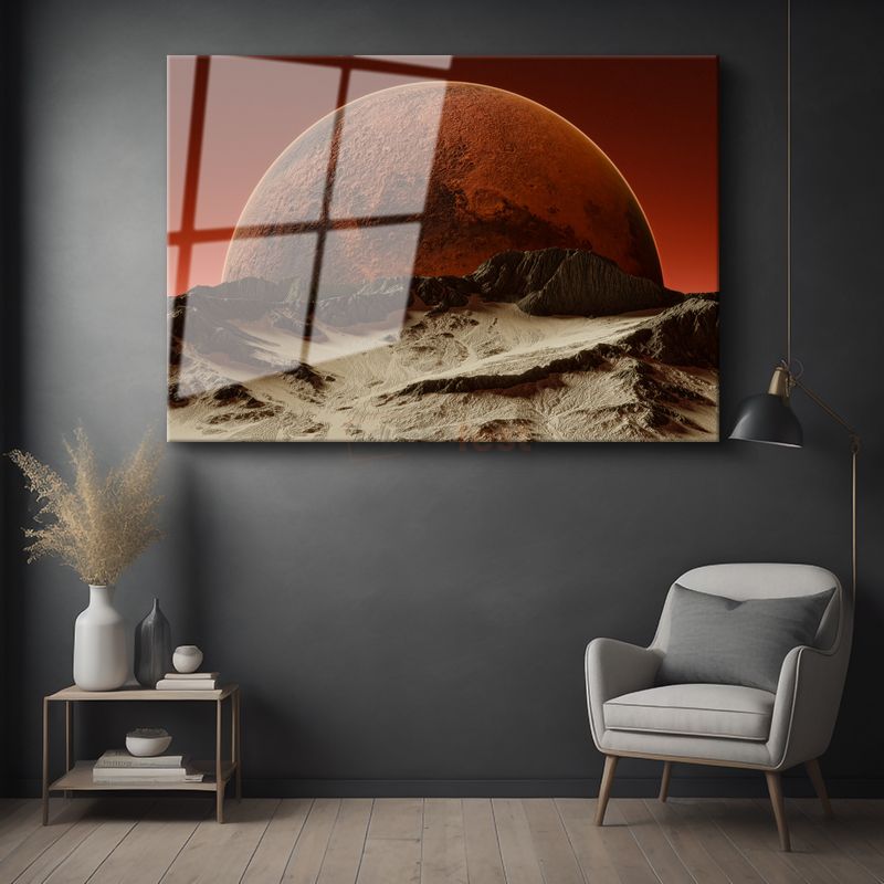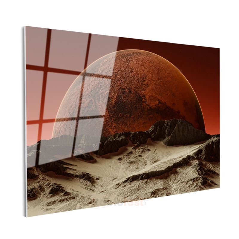 Mars Gezegeni - Kızıl Gezegenin Muhteşem Görünümü Cam Tablo