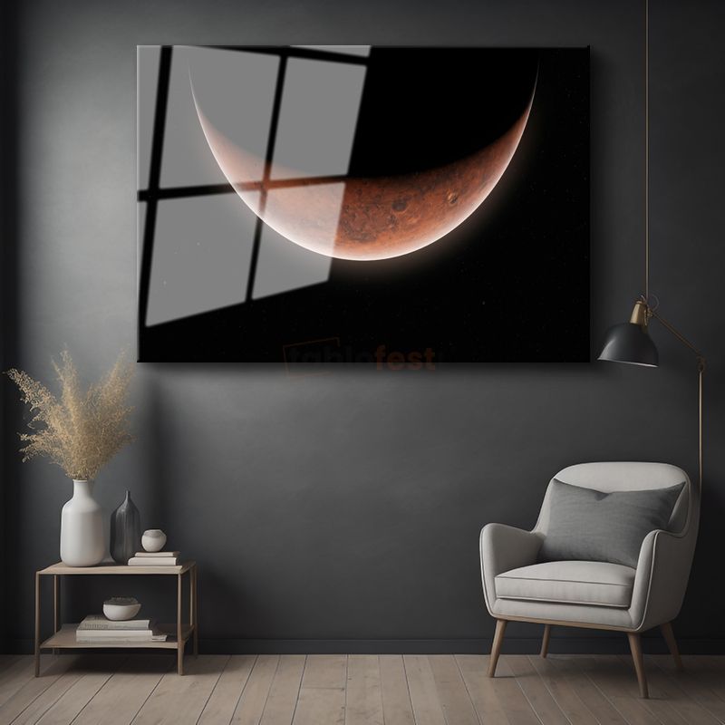 Mars Hilali - Kızıl Gezegenin Büyüleyici Görünümü Cam Tablo