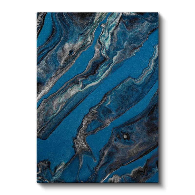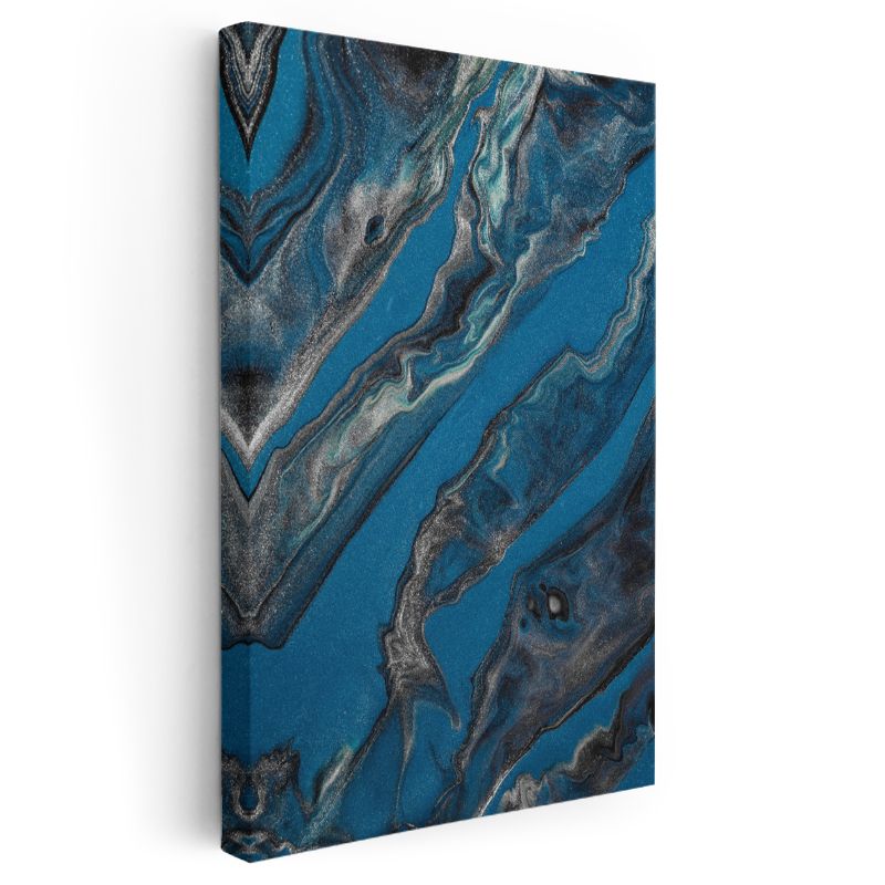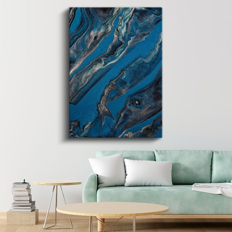 Mavi Akış - Gümüş Dalgalar Soyut Mermer Desen Kanvas Tablo