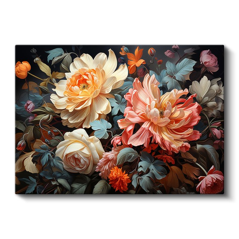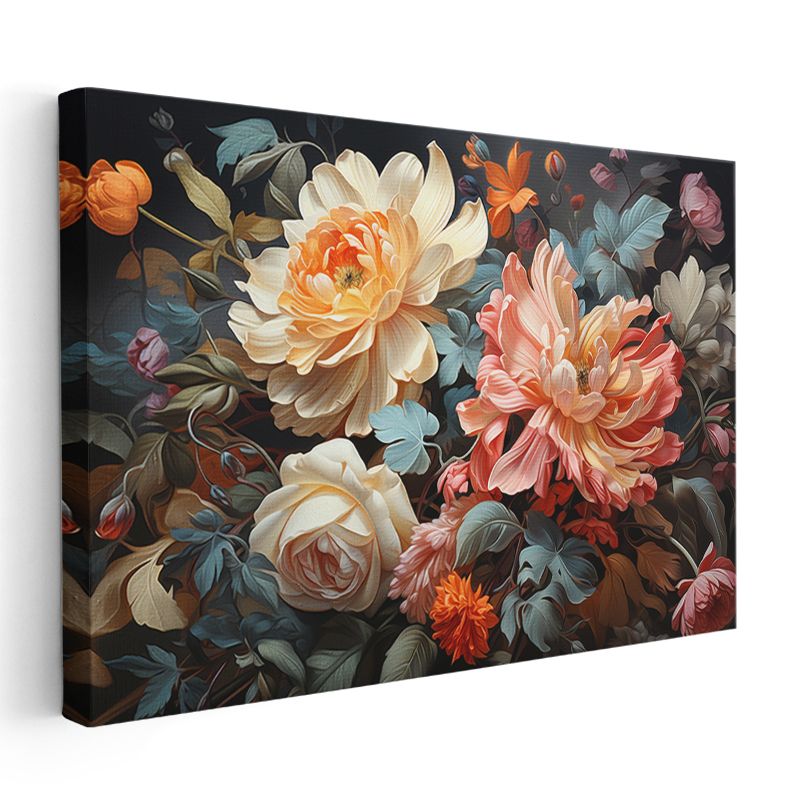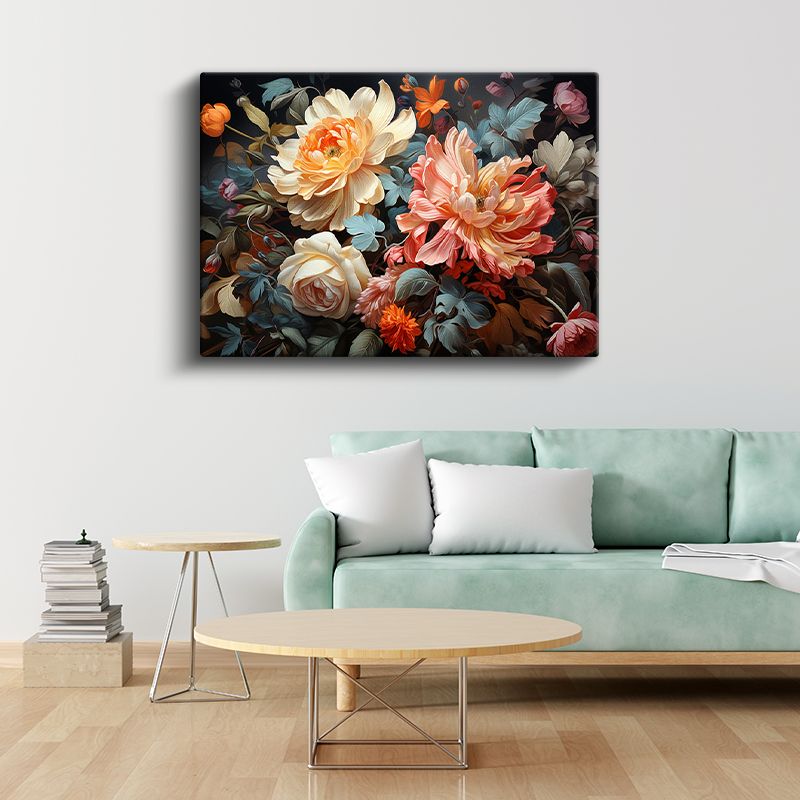 Mavi Altın Buket - Lüks Çiçek Aranjmanı Kanvas Tablo