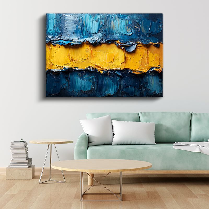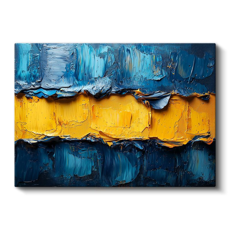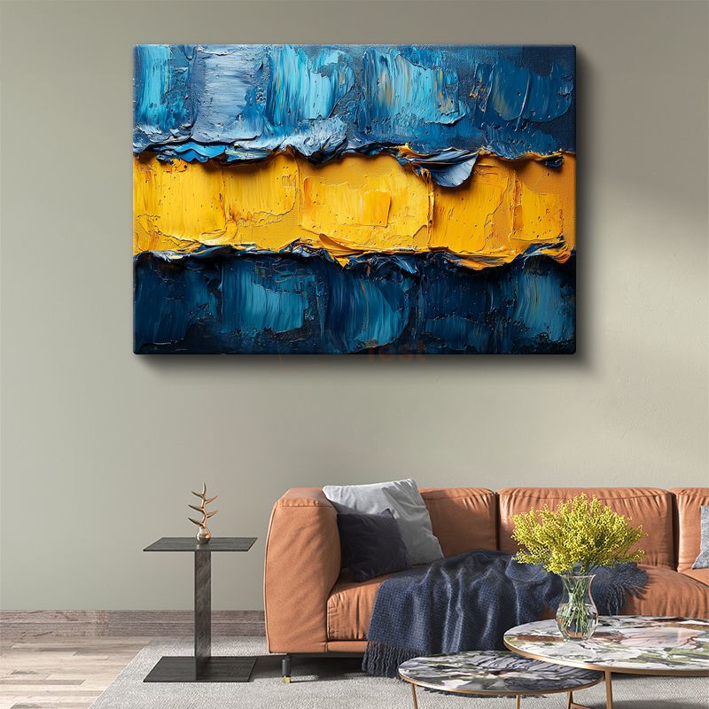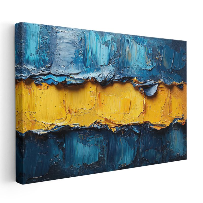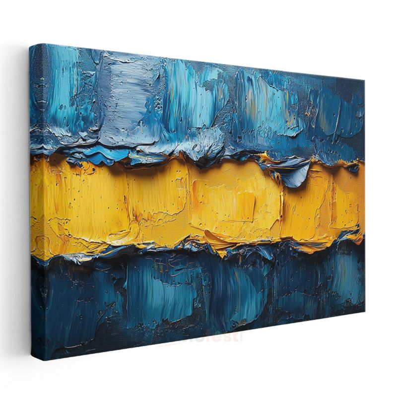 Mavi Altın Kontrast - Tekstürlü Boya Katmanları Kanvas Tablo