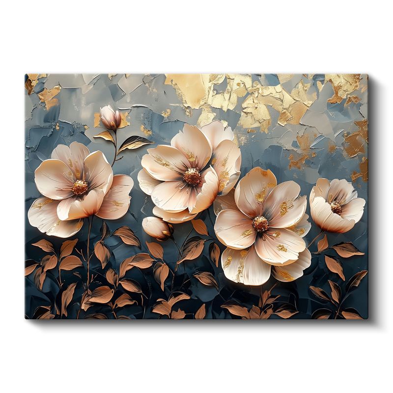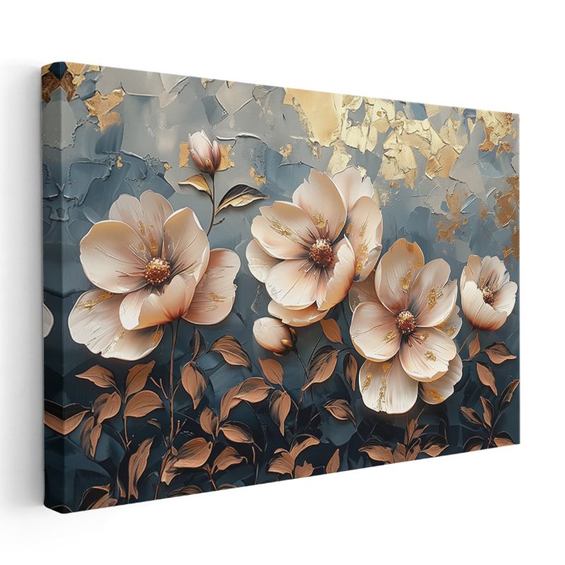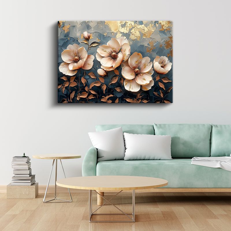 Mavi Altın Yapraklar - Sulu Boya Efektli Zarif Tasarım Kanvas Tablo