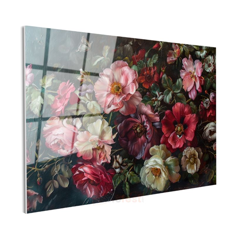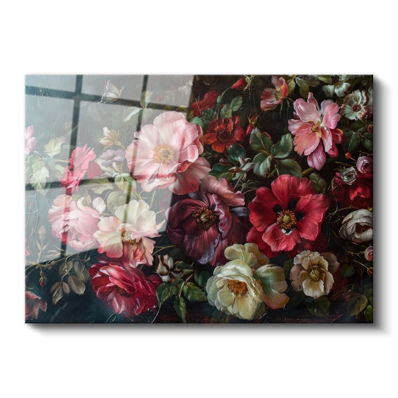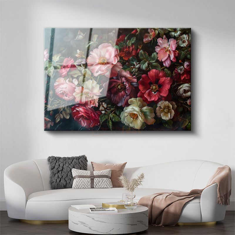 Mavi Anemonlar - Sanatsal Çiçek Deseni Cam Tablo
