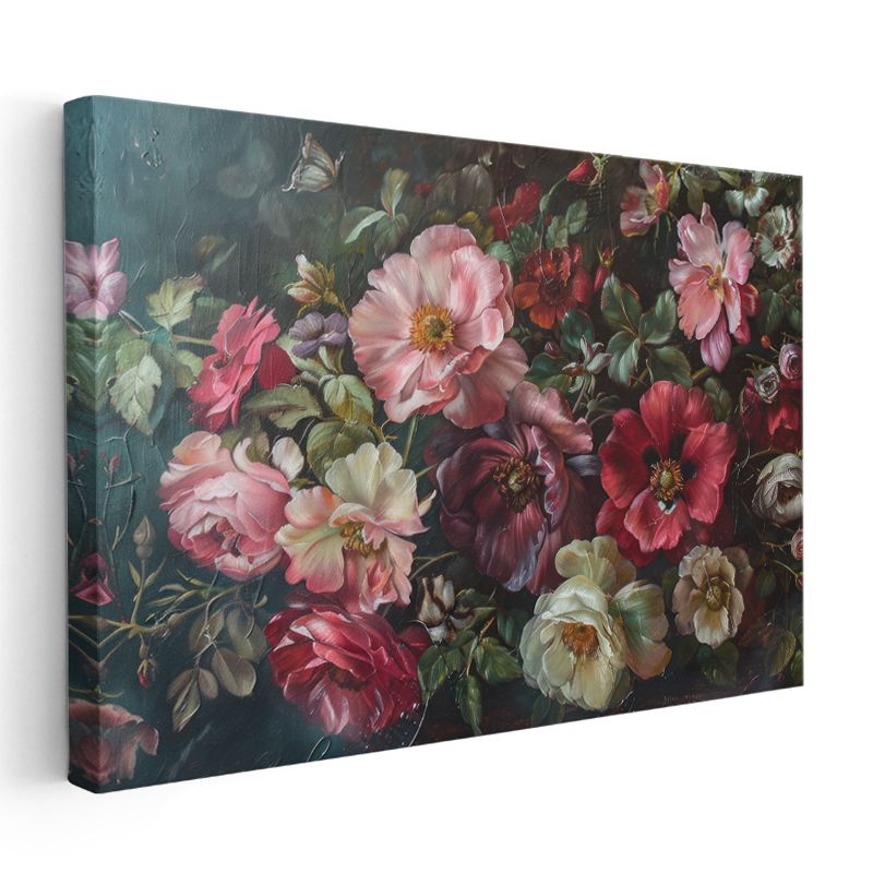 Mavi Anemonlar - Sanatsal Çiçek Deseni Kanvas Tablo