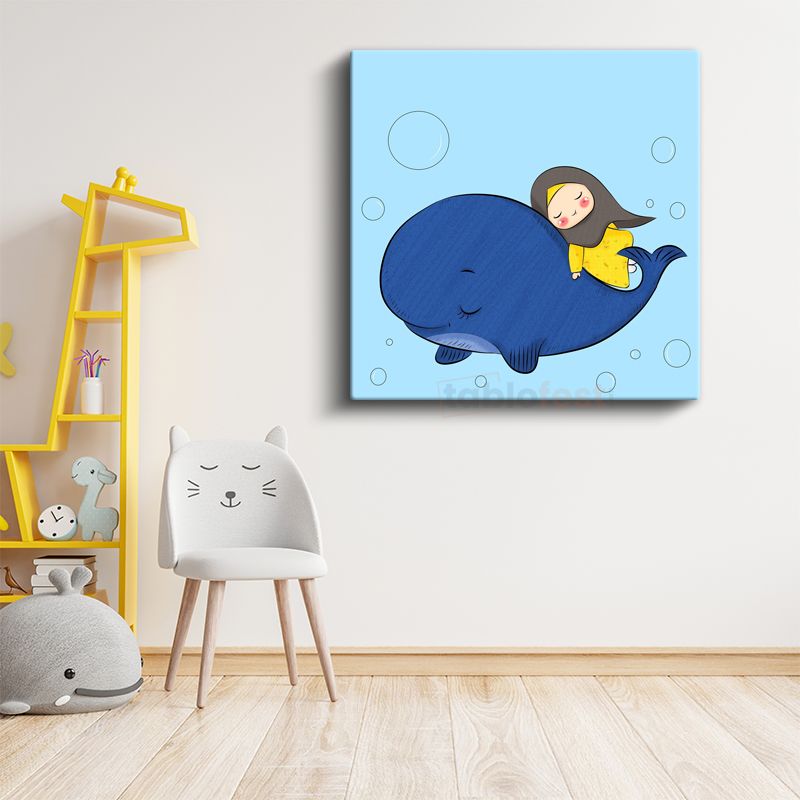 Mavi Balina - Sarı Elbiseli Küçük Kız Dostluğu Kanvas Tablo
