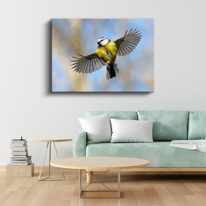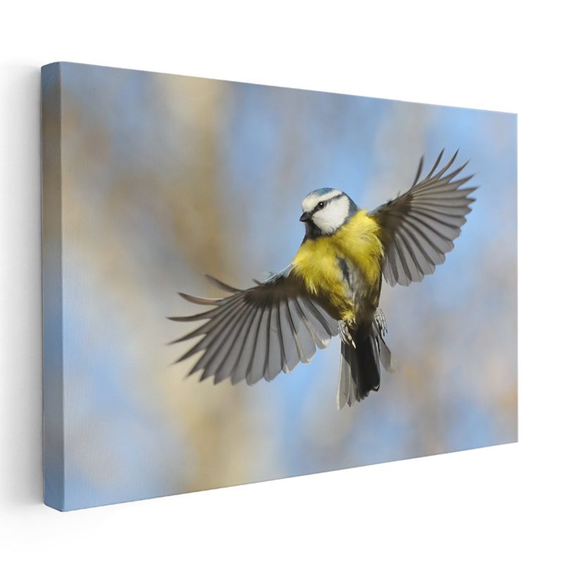 Mavi Baştankara - Gökyüzünde Kanat Çırpan Kuş Kanvas Tablo
