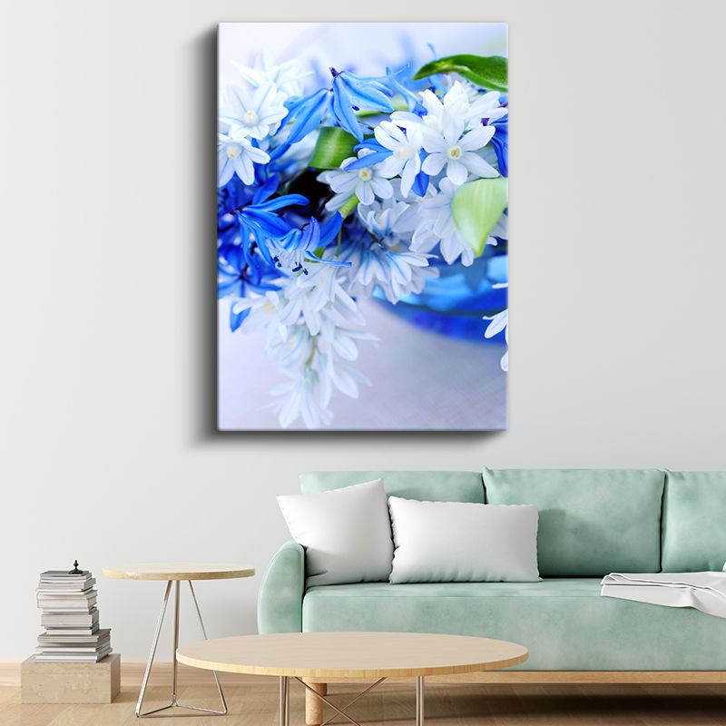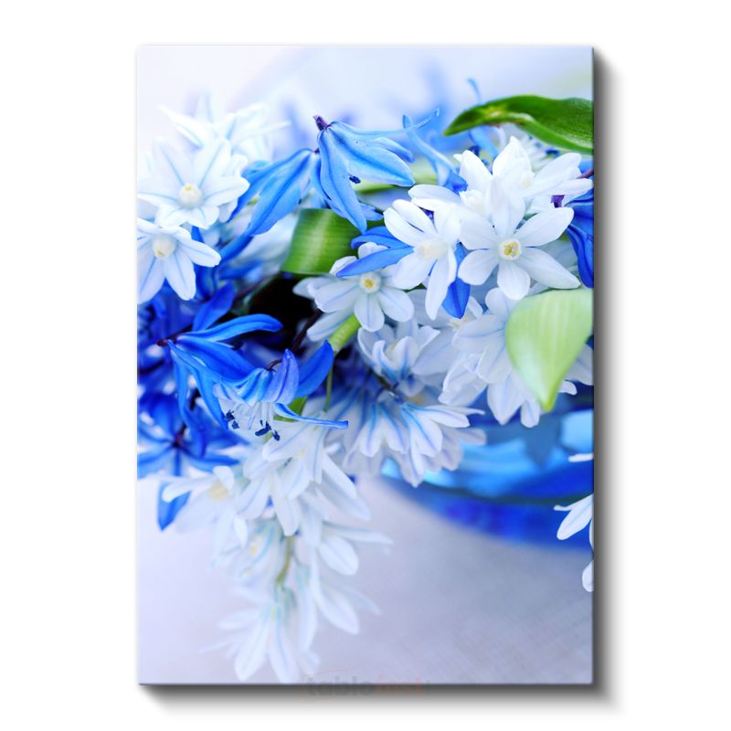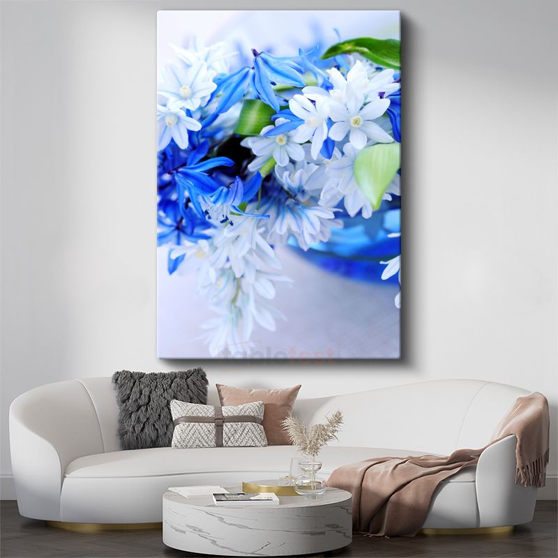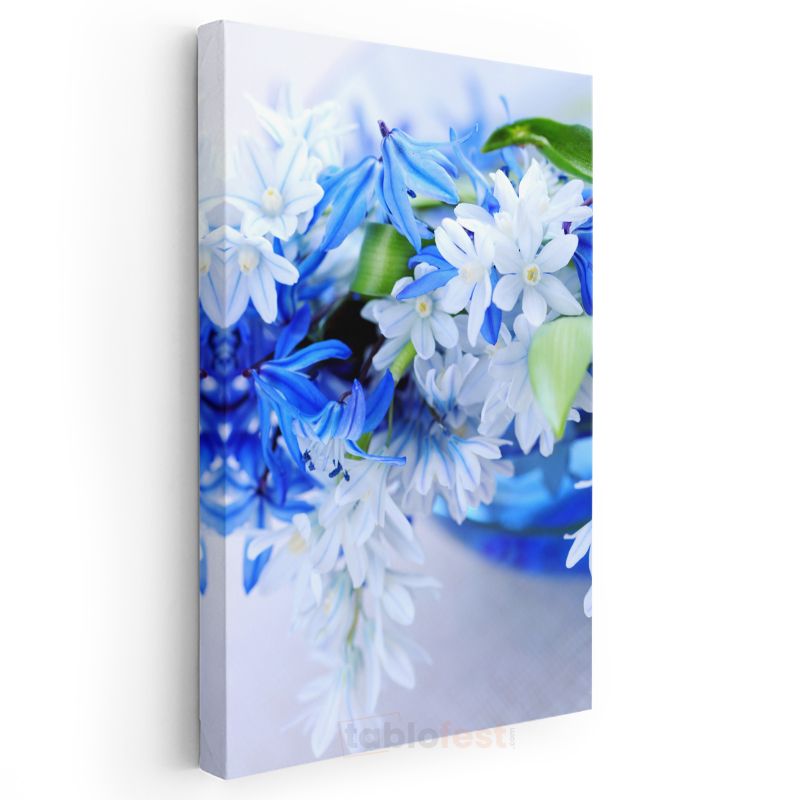 Mavi Beyaz Çiçekler - Zarif Bahar Kompozisyonu Kanvas Tablo