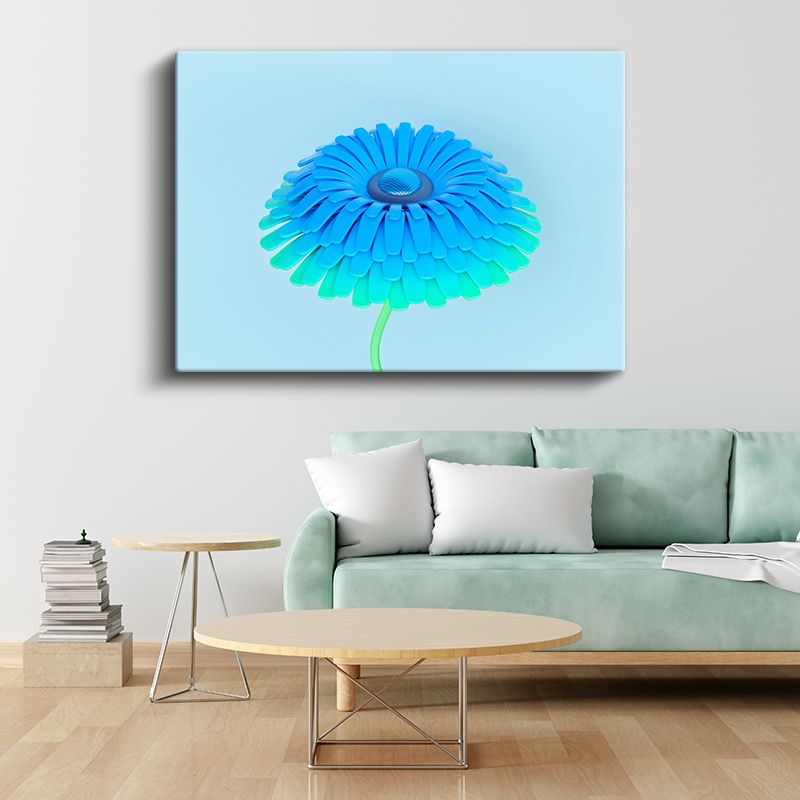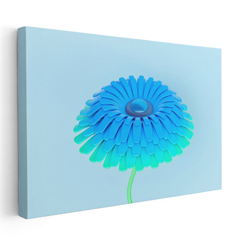 Mavi Çiçek - 3D Vektörel Çiçek Tasarımı Kanvas Tablo
