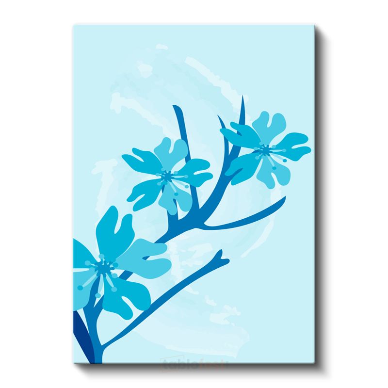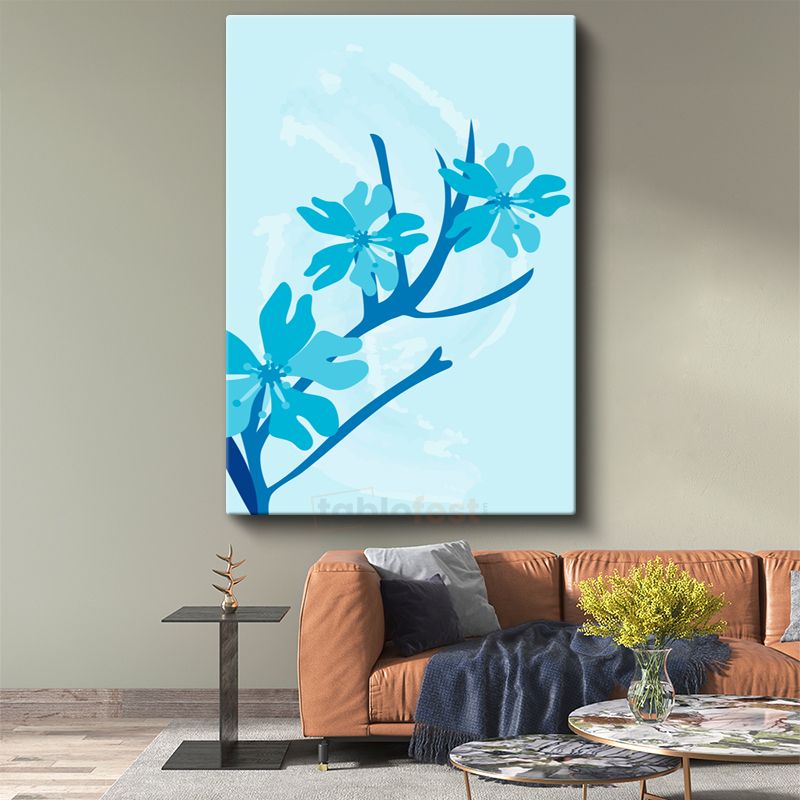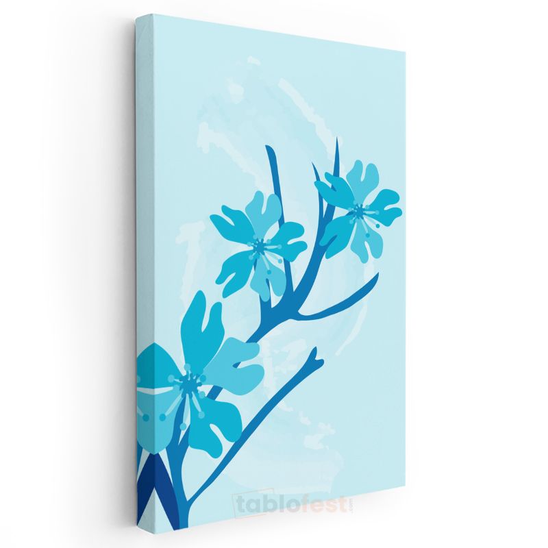 Mavi Çiçek Dalları - Turkuaz Tonlarında Estetik Bitki Siluetleri Kanvas Tablo