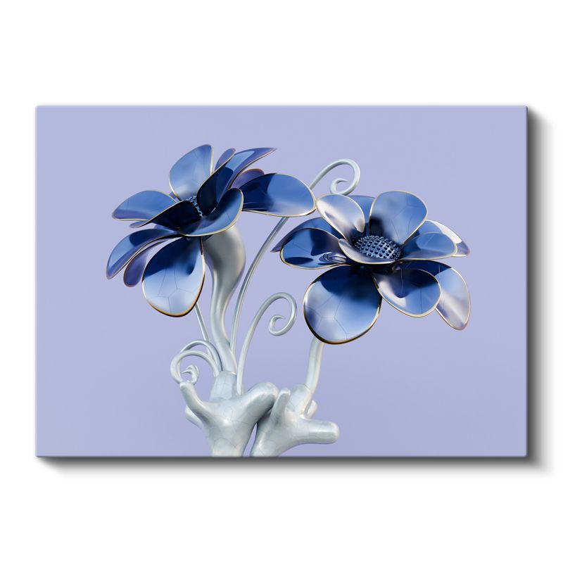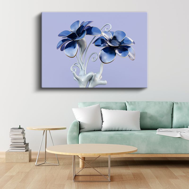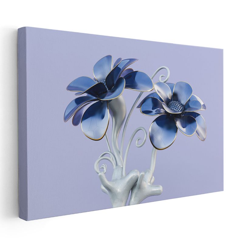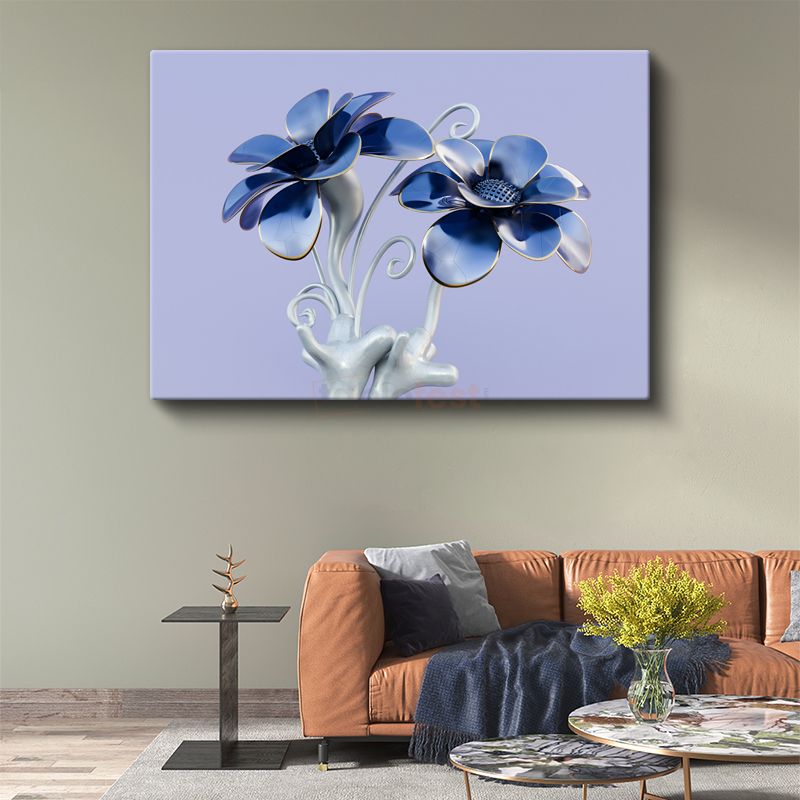 Mavi Çiçek Heykeli - Metalik Flora Tasarım Kanvas Tablo