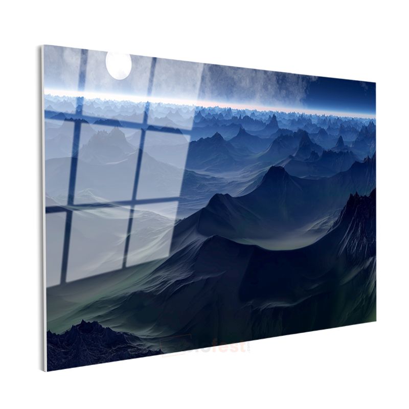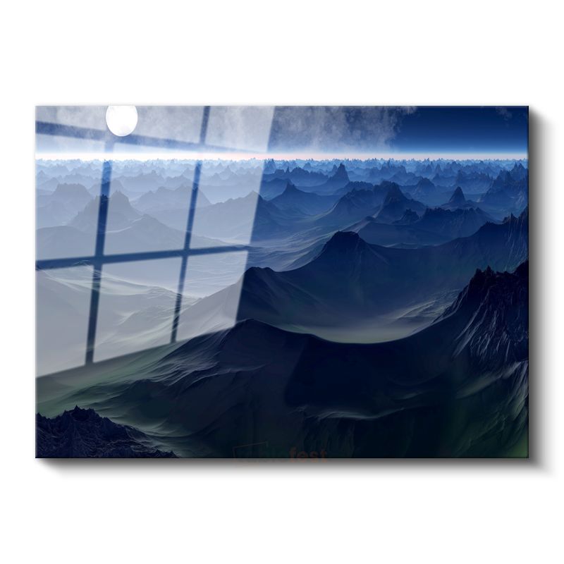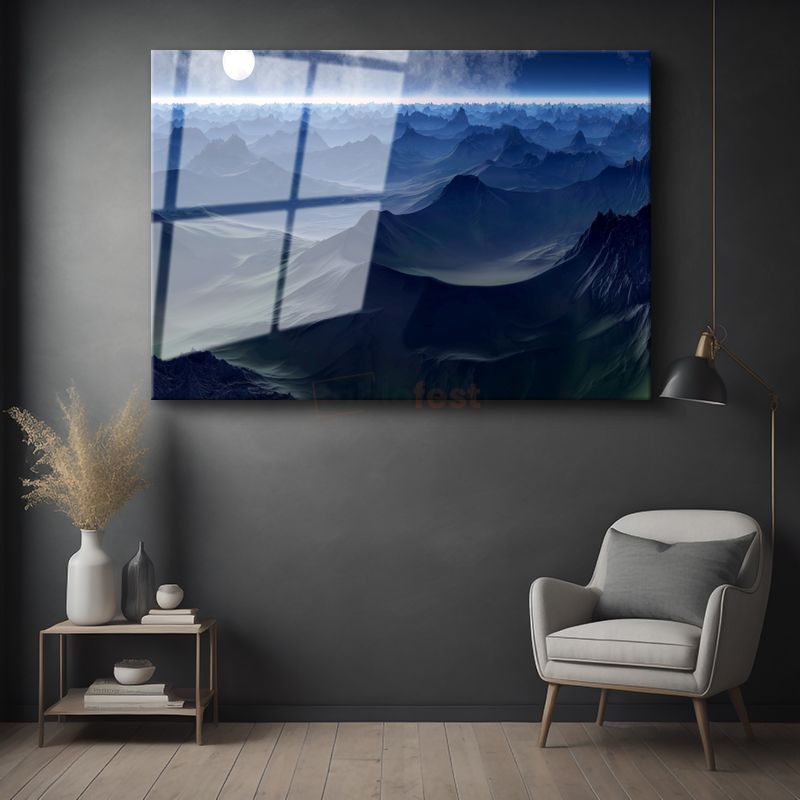 Mavi Dağlar - Ay Işığında Mistik Vadiler Cam Tablo
