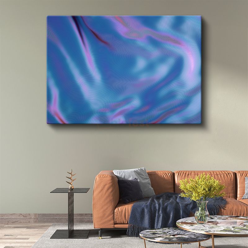 Mavi Dalga - Akışkan Pembe Geçişli Soyut Desen Kanvas Tablo