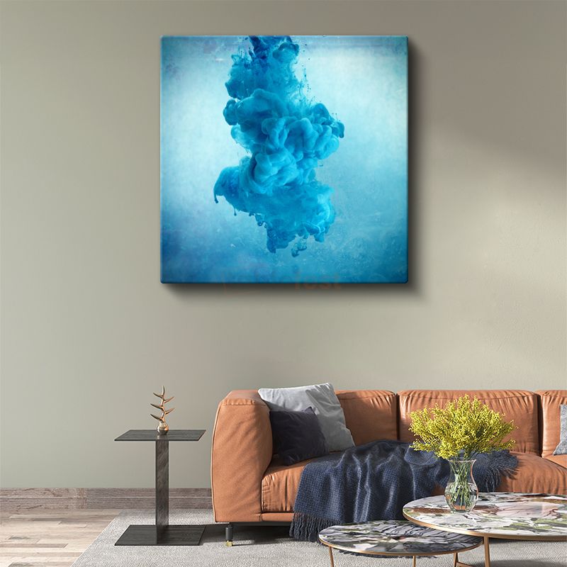 Mavi Dalga - Suda Dans Eden Mürekkep Efekti Kanvas Tablo