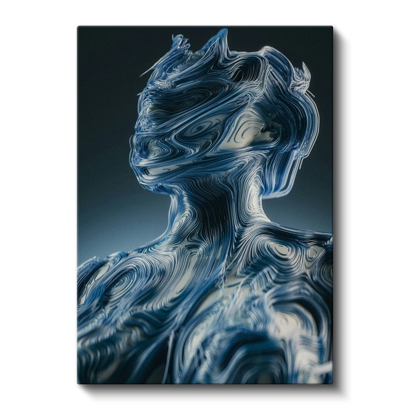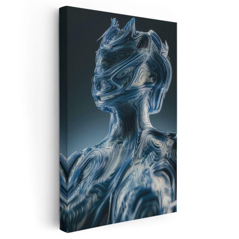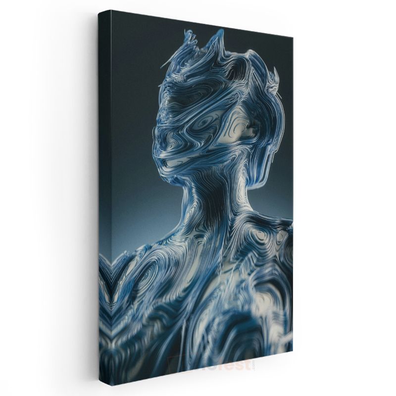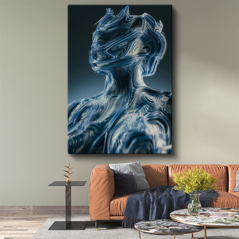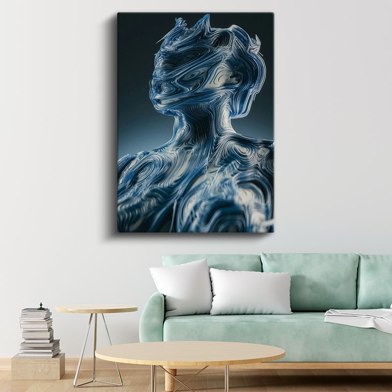 Mavi Dalgalar - Akışkan Çizgili Figür Kanvas Tablo