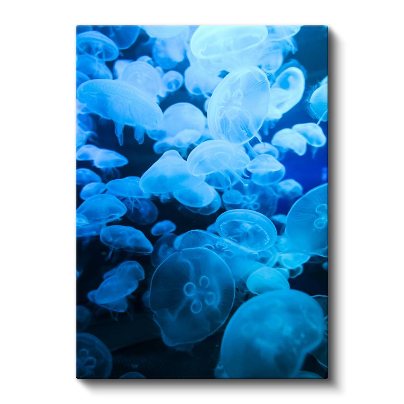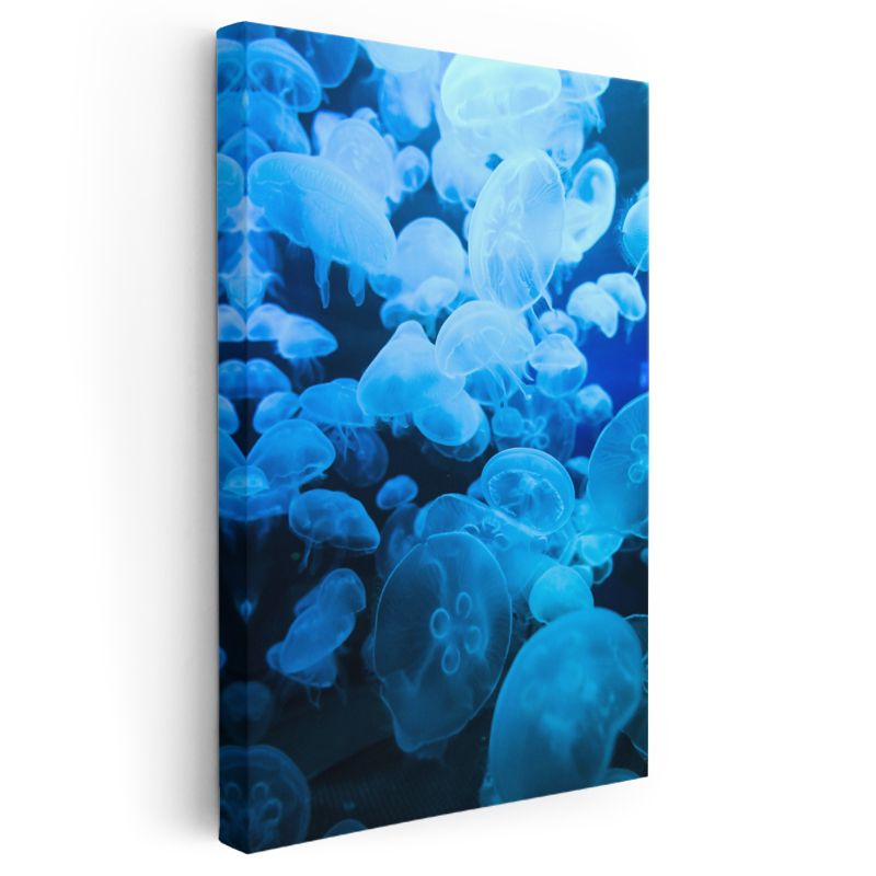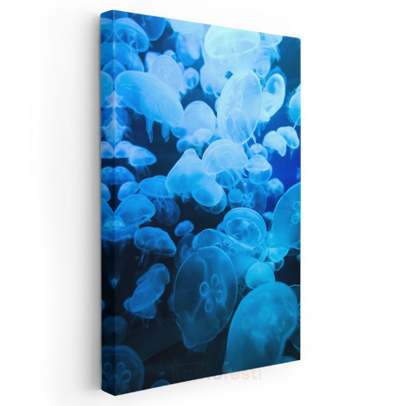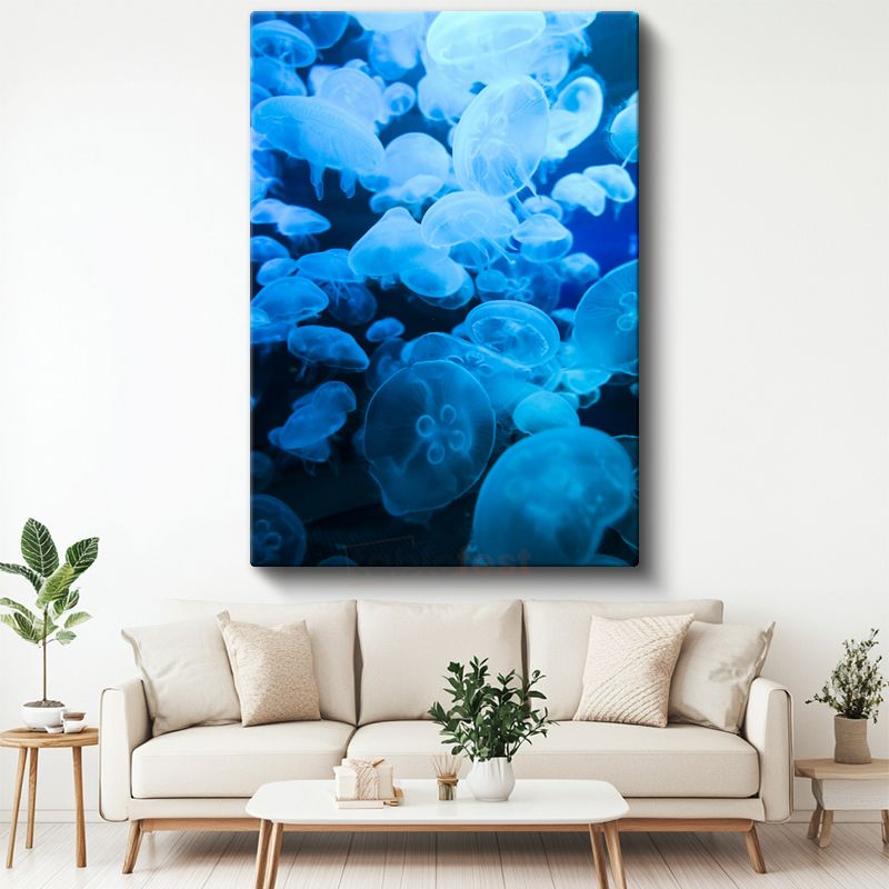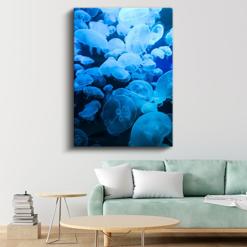 Mavi Denizanaları - Derin Sularda Dans Eden Şeffaf Topluluk Kanvas Tablo