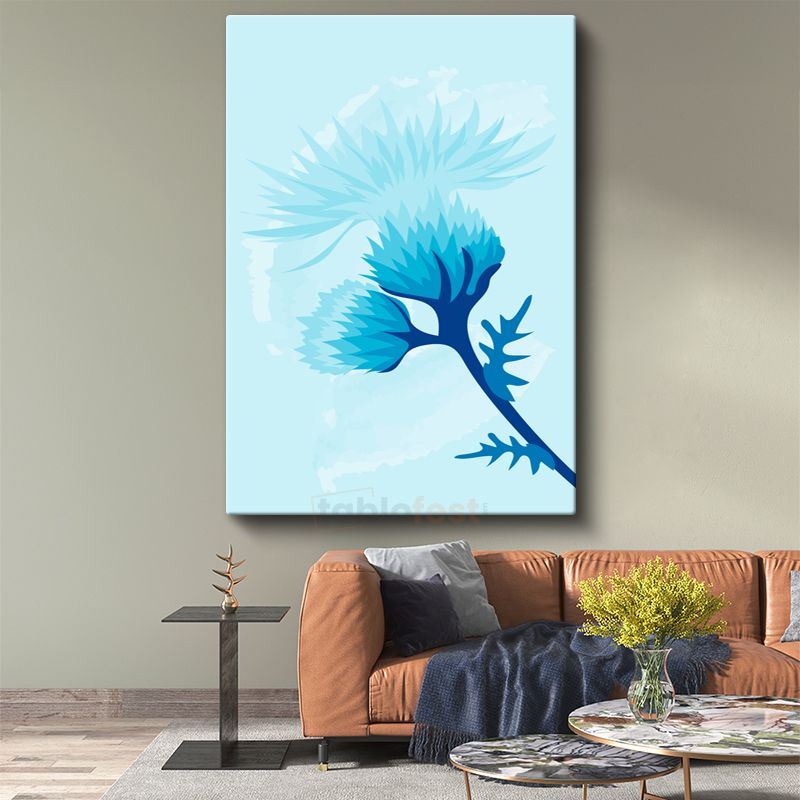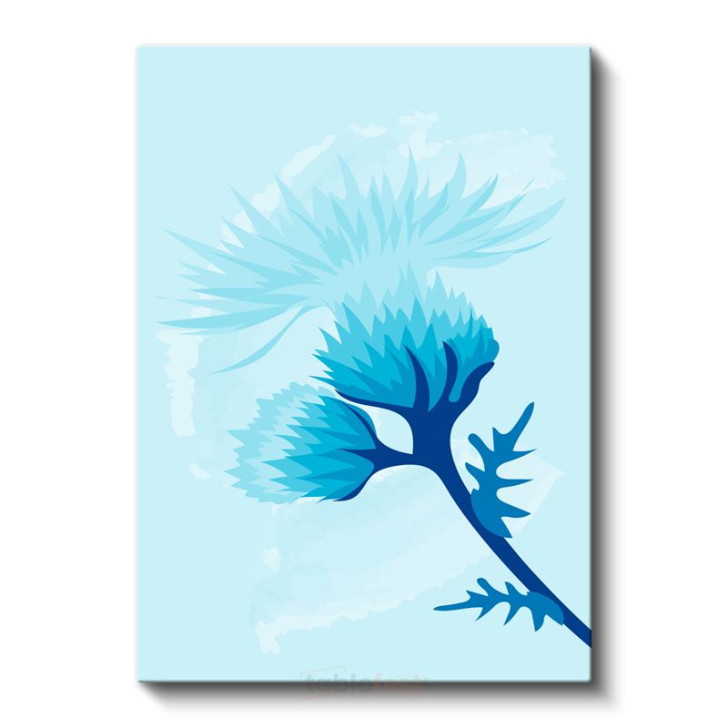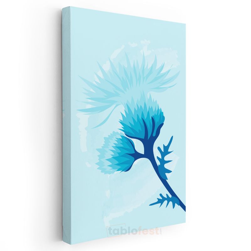 Mavi Devedikeni - Turkuaz Tonlarında Zarif Dikenli Çiçek Kanvas Tablo