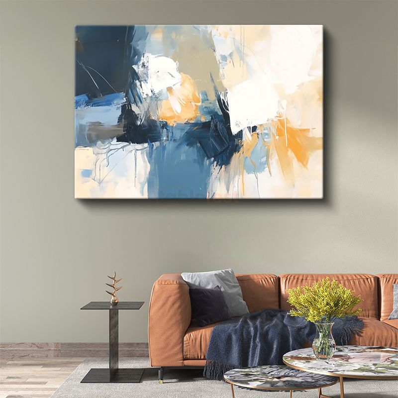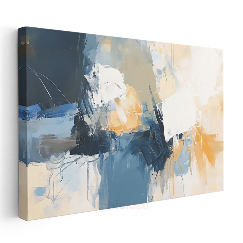 Mavi Dinamizm - Soyut Fırça Darbeleri Kanvas Tablo