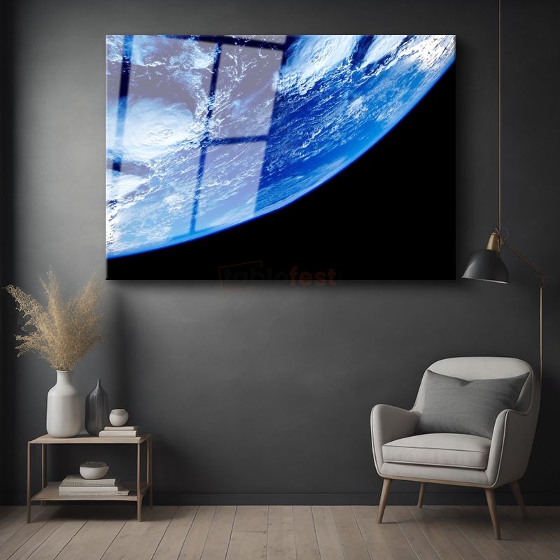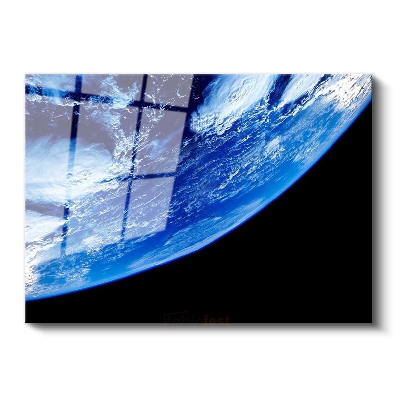 Mavi Gezegen - Bulutlarla Kaplı Dünya Görünümü Cam Tablo