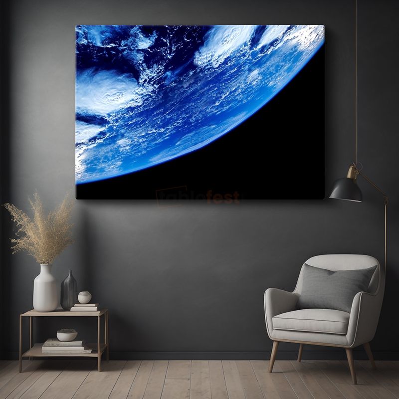 Mavi Gezegen - Bulutlarla Kaplı Dünya Görünümü Kanvas Tablo