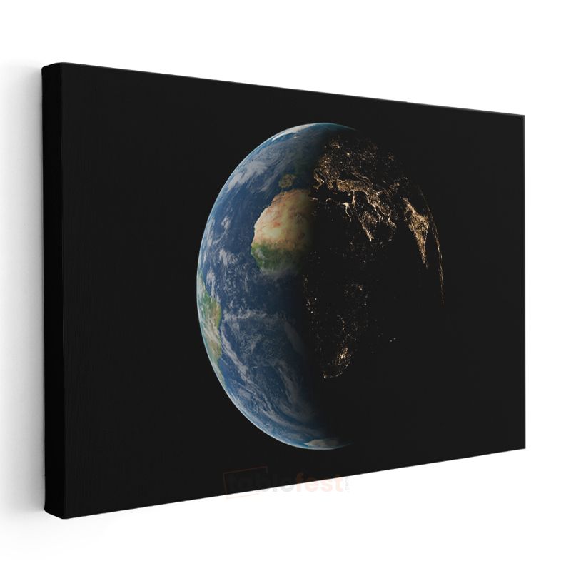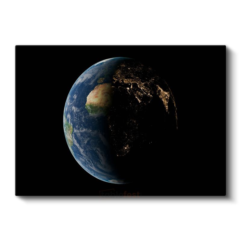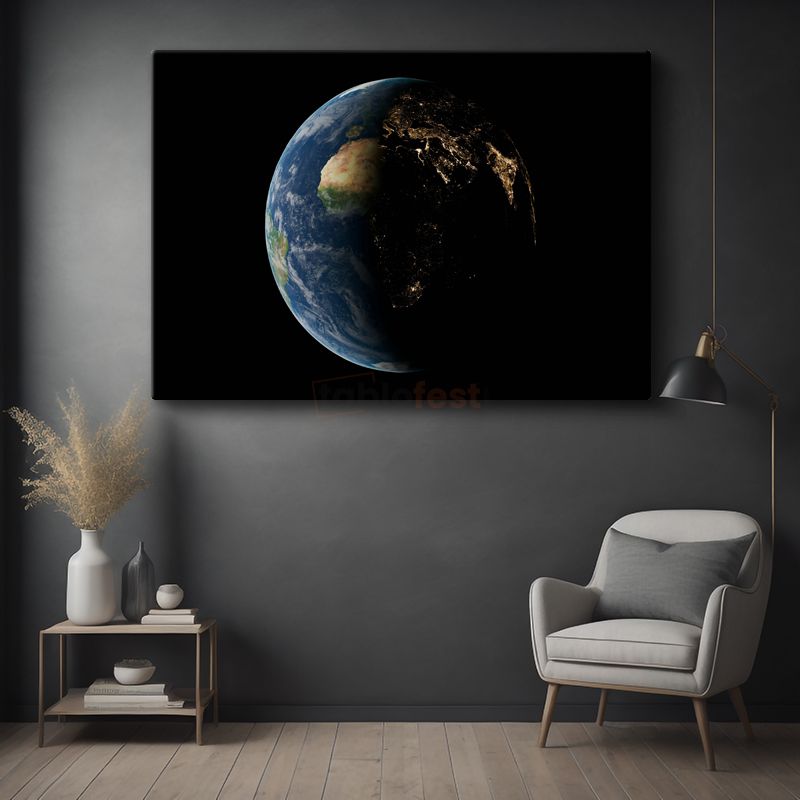 Mavi Gezegen - Gündüz ve Gece Kontrastında Dünya Kanvas Tablo