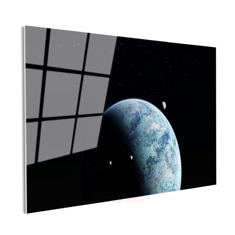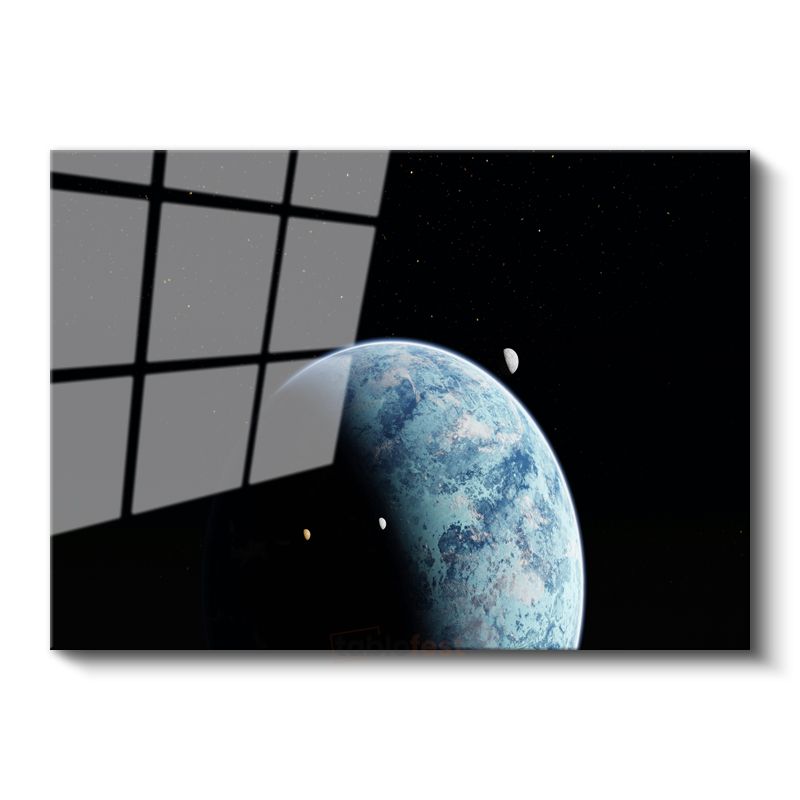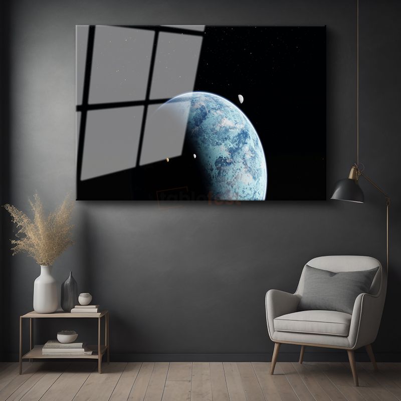 Mavi Gezegen - Uzaydan Dünya ve Ay Görünümü Cam Tablo