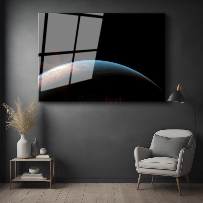Mavi Gezegen - Uzaydan Dünya'nın Gündoğumu Cam Tablo