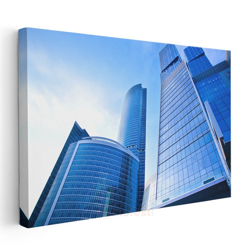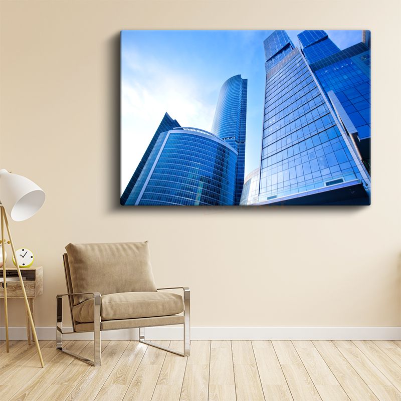 Mavi Gökdelenler - Modern Cam Mimari Kanvas Tablo