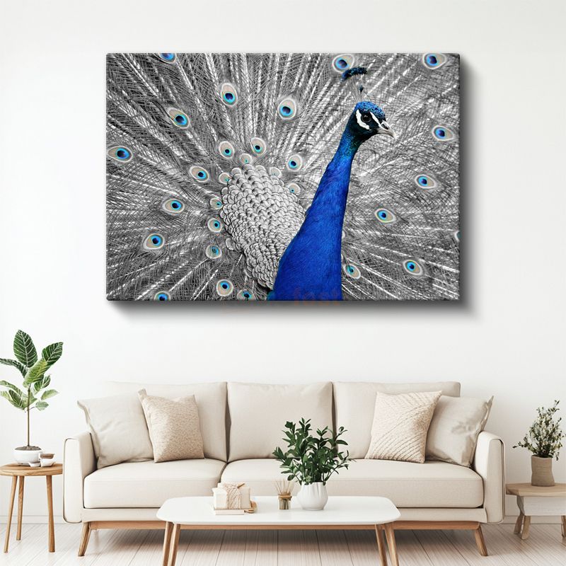 Mavi İhtişam - Tüylerini Açan Tavus Kuşu Kanvas Tablo
