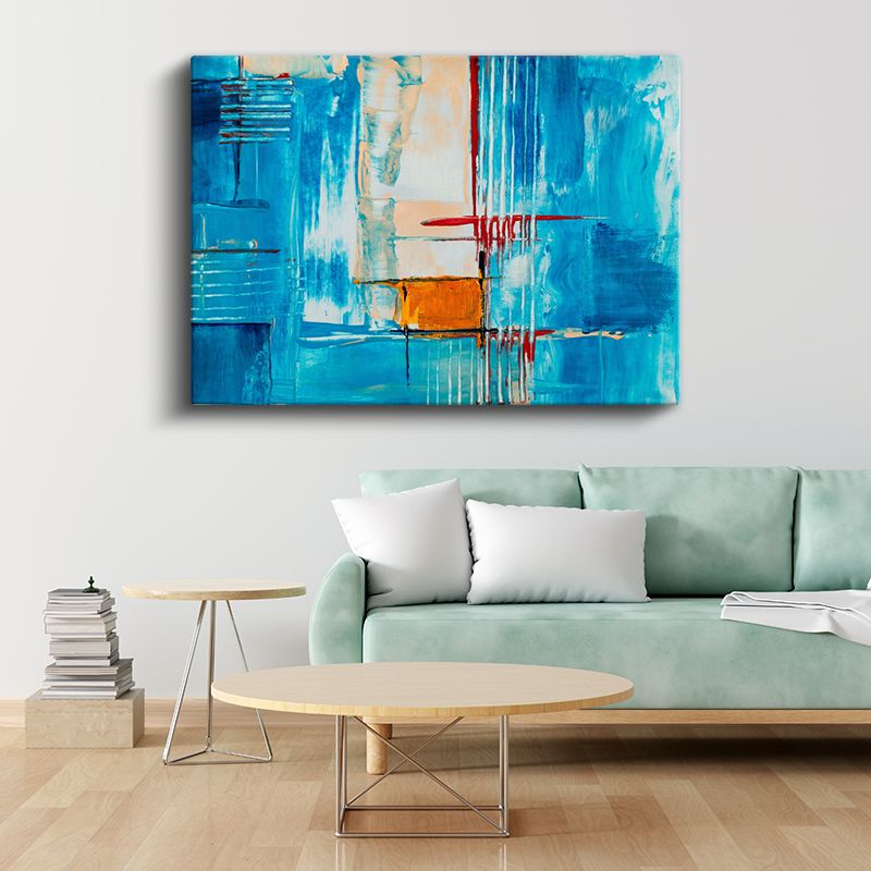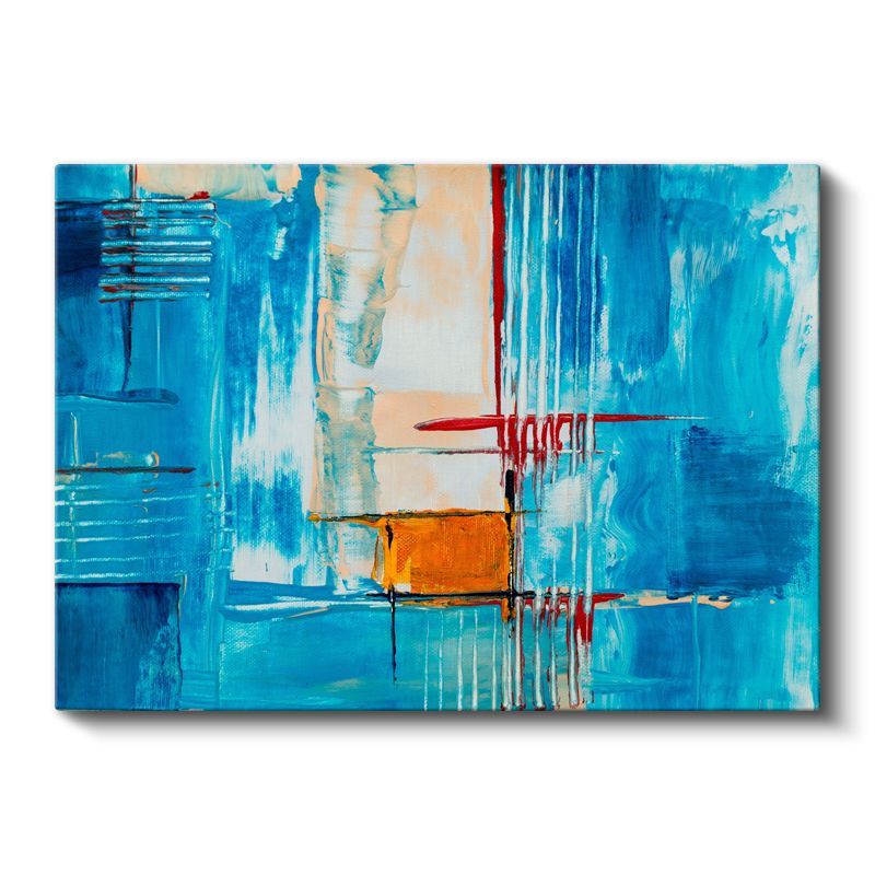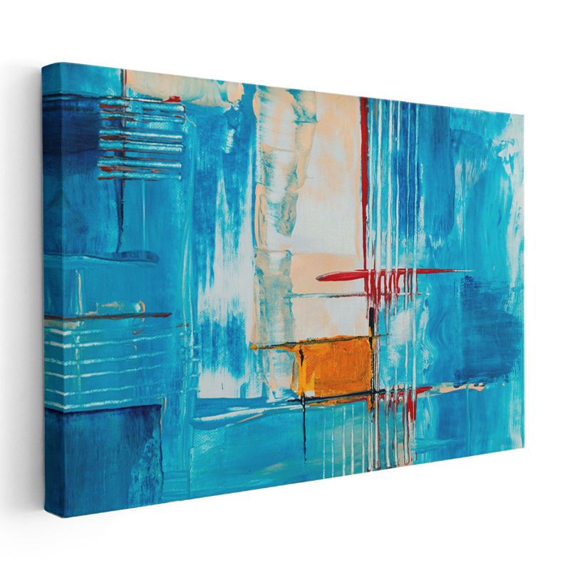 Mavi Kompozisyon - Kırmızı Detaylı Geometrik Soyut Kanvas Tablo