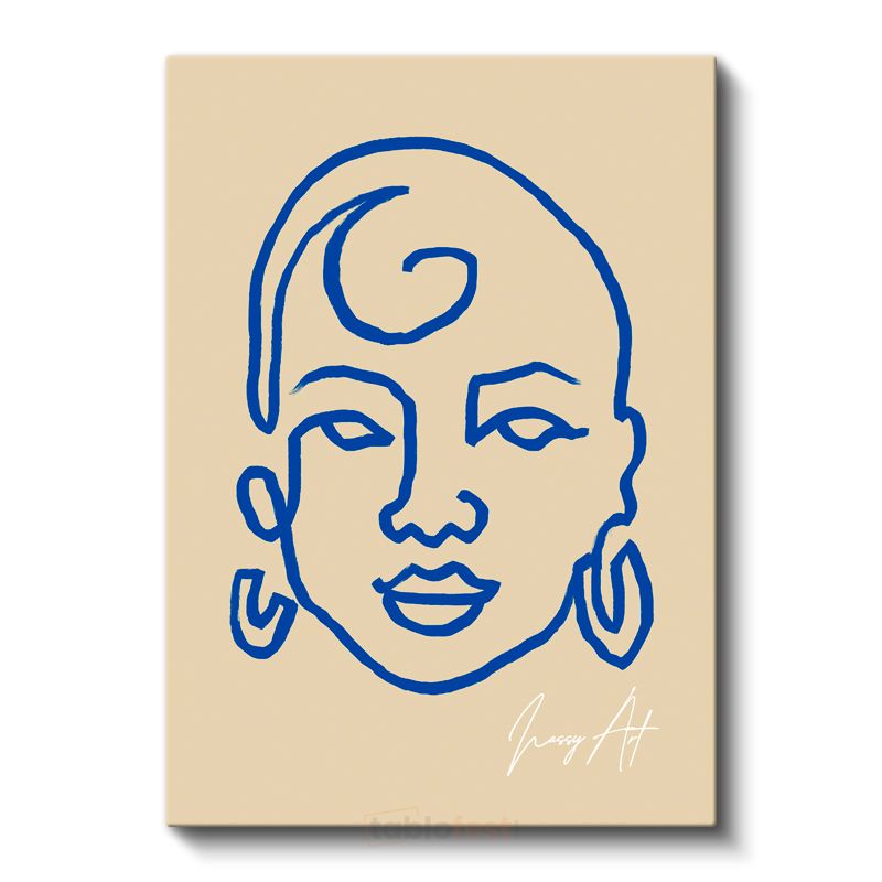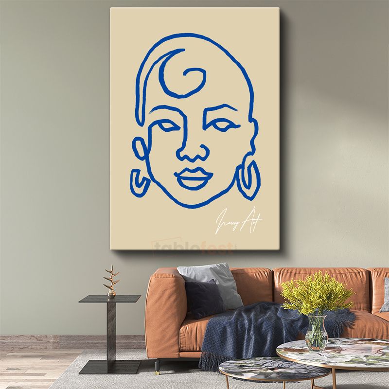 Mavi Kontur - Minimalist Çizgi Portre Kanvas Tablo