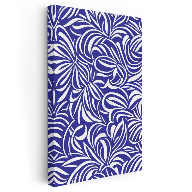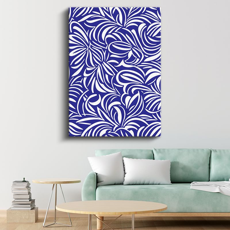 Mavi Labirent - Beyaz Organik Desenler Kanvas Tablo