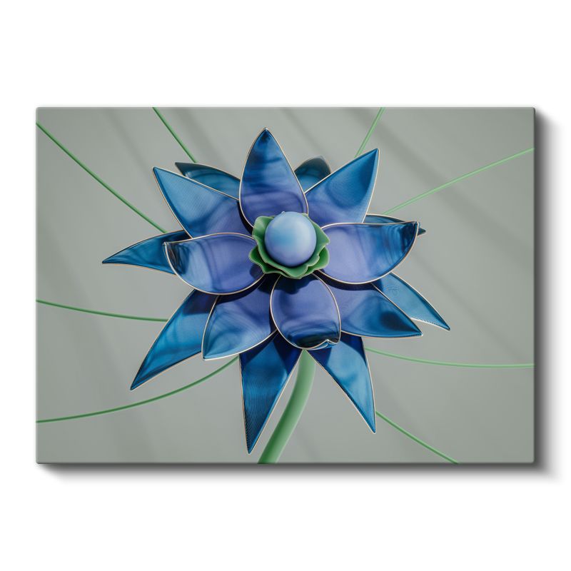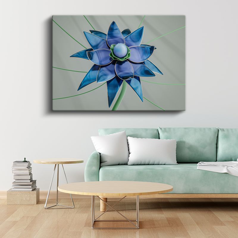 Mavi Lotus - Geometrik Çiçek Tasarımı Kanvas Tablo