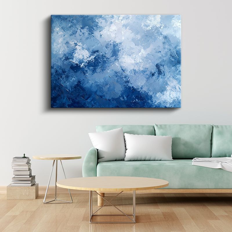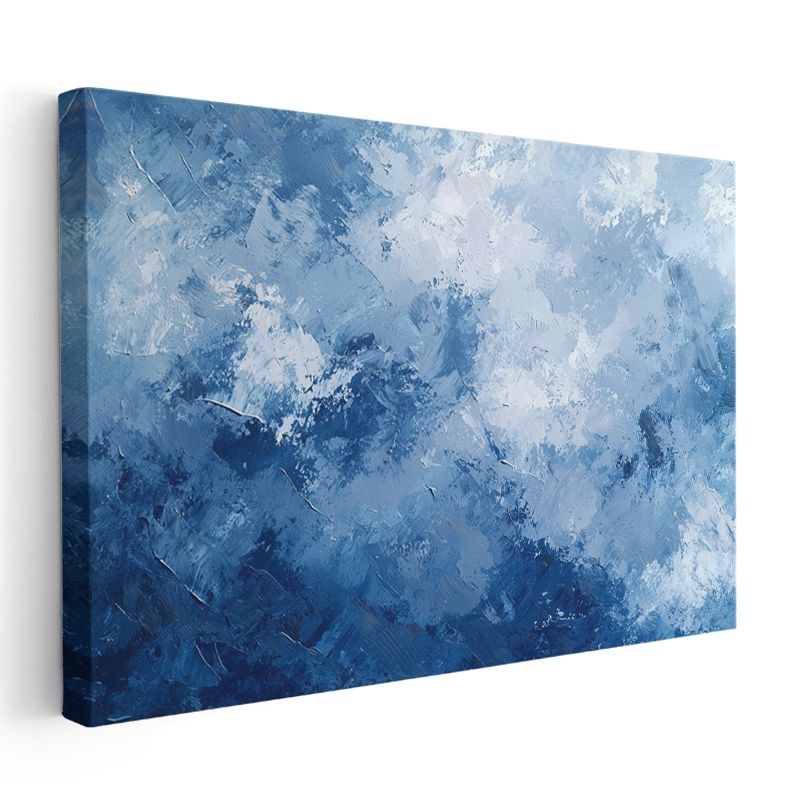 Mavi Okyanus Soyutlaması - Dinamik Fırça Darbeleri Kanvas Tablo