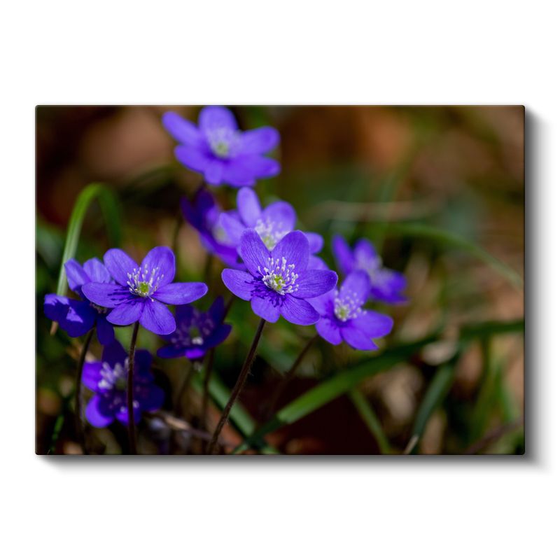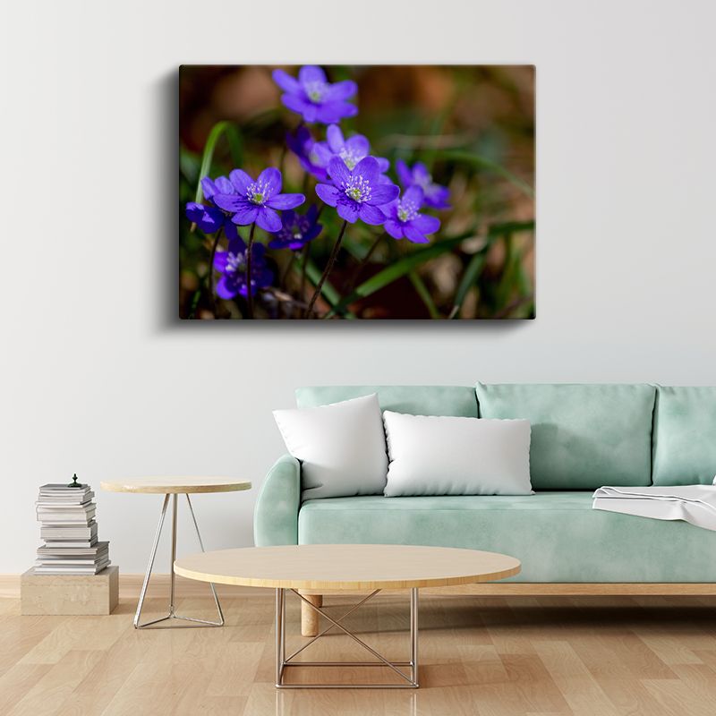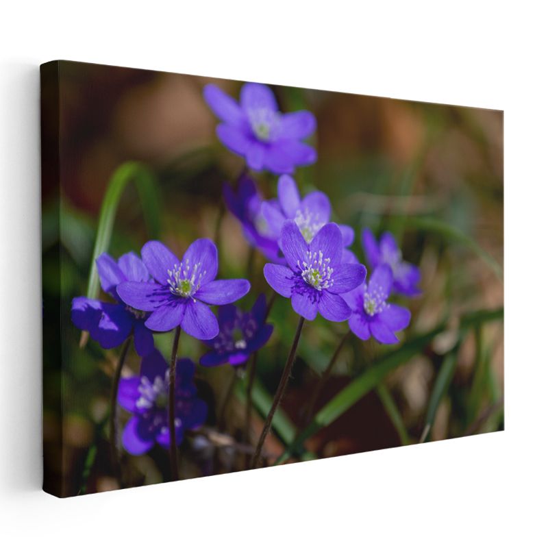 Mavi Orman Çiçekleri - Yeşil Yapraklı Bahar Kanvas Tablo