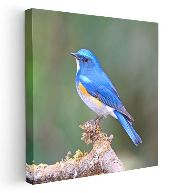 Mavi Ötleğen Kuşu - Dalda Konaklayan Gökyüzü Mücevheri Kanvas Tablo