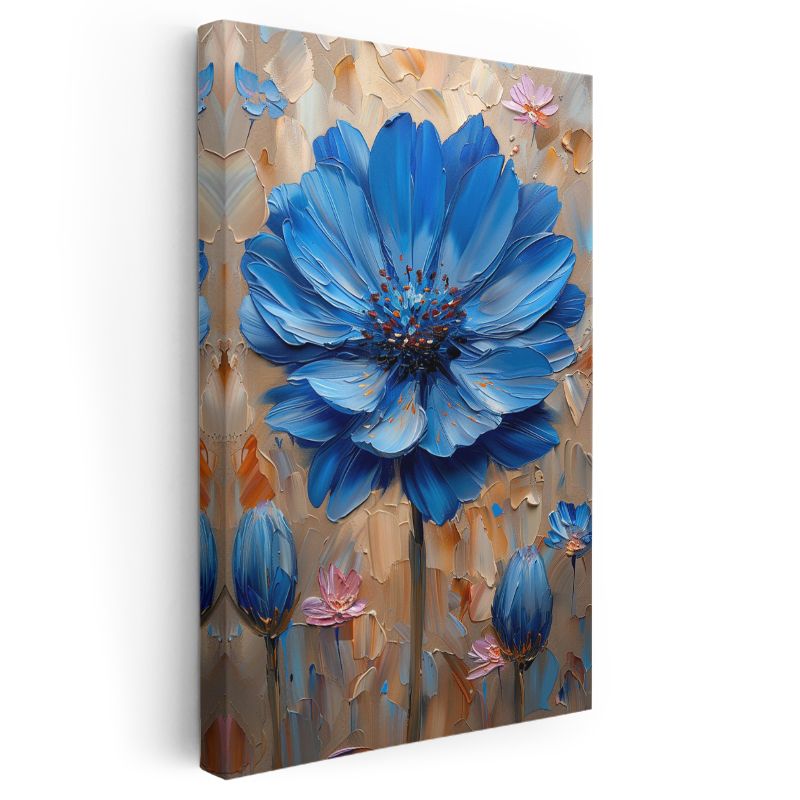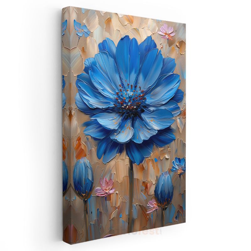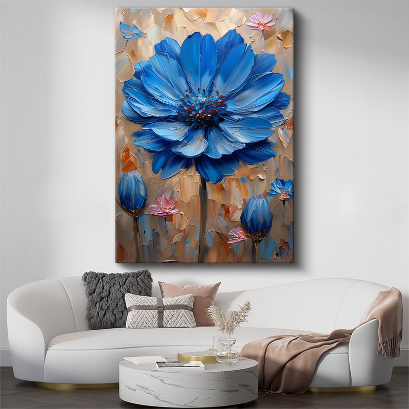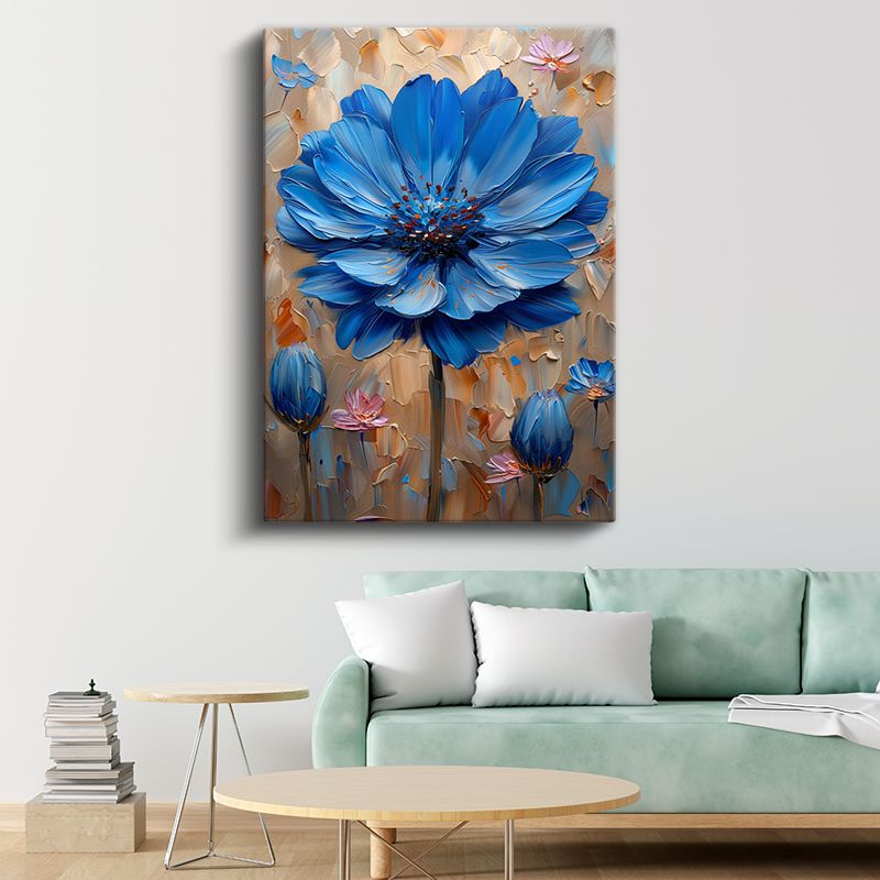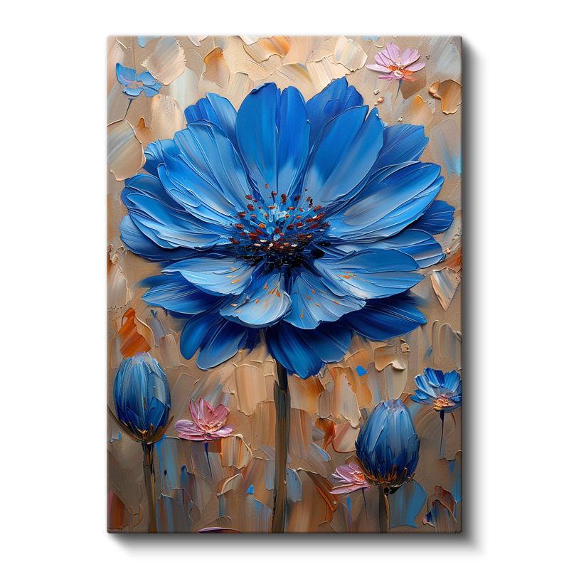 Mavi Papatya - Dokulu Fırça Darbeleriyle Modern Çiçek Kanvas Tablo