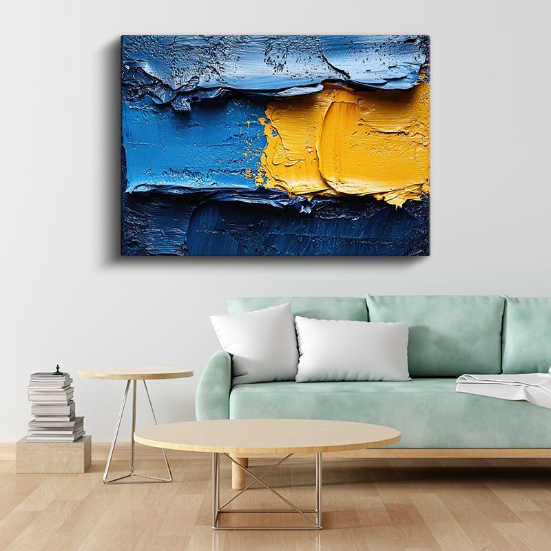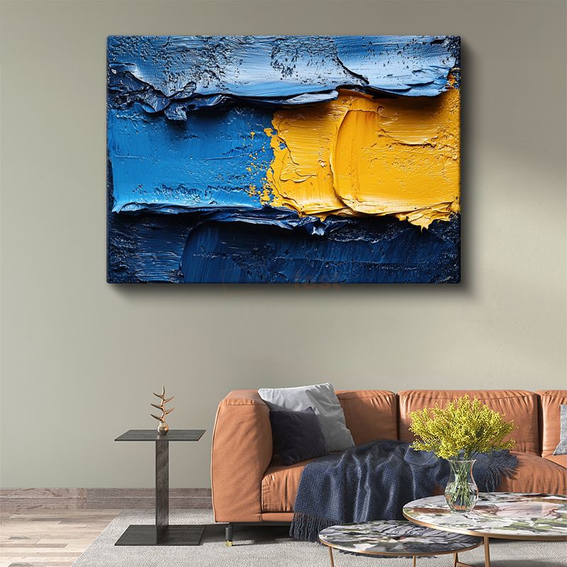 Mavi Sarı Kontrast - Tekstürel Ekspresyonist Kanvas Tablo