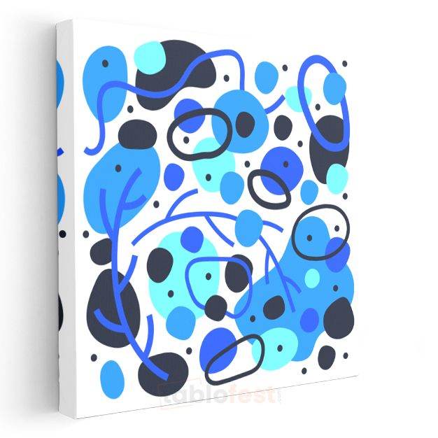 Mavi Senfoni - Dalgalı Çizgiler ve Geometrik Daireler Kanvas Tablo