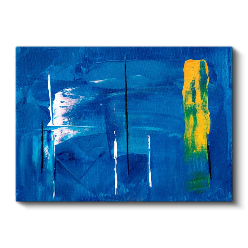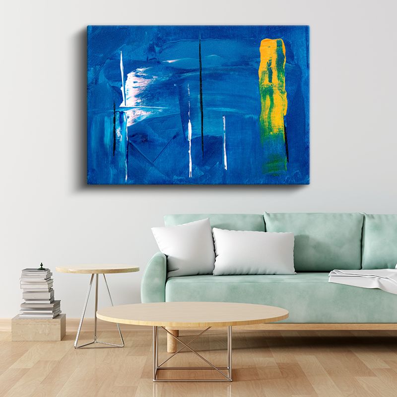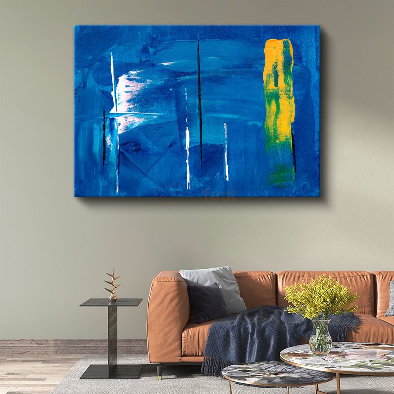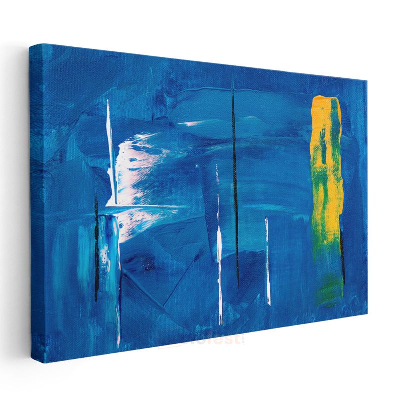 Mavi Senfoni - Sarı Vurgulu Soyut Fırça Darbeleri Kanvas Tablo