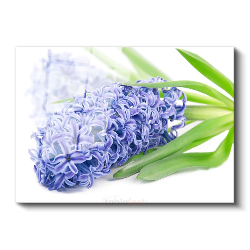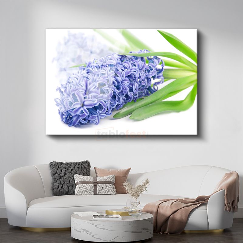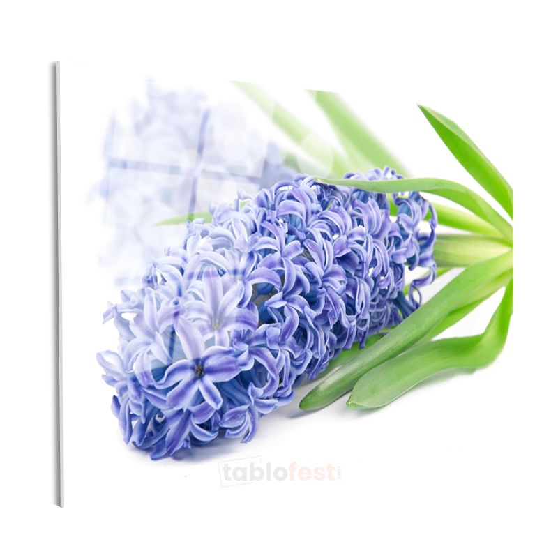 Mavi Sümbül - Beyaz Yapraklı Bahar Çiçeği Cam Tablo