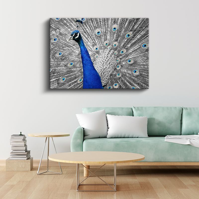 Mavi Tavus Kuşu - İhtişamlı Tüyler Gösterisi Kanvas Tablo