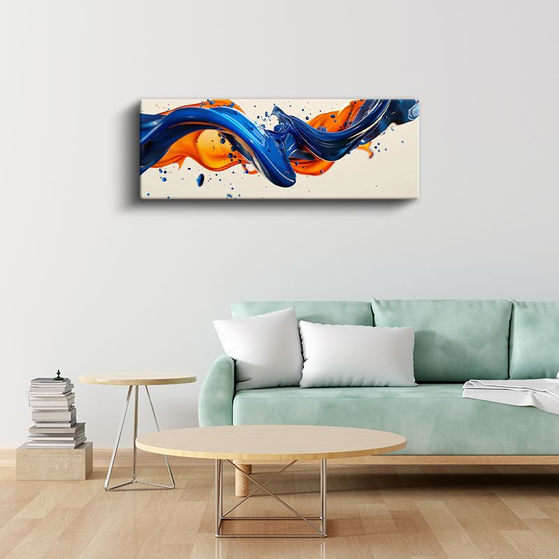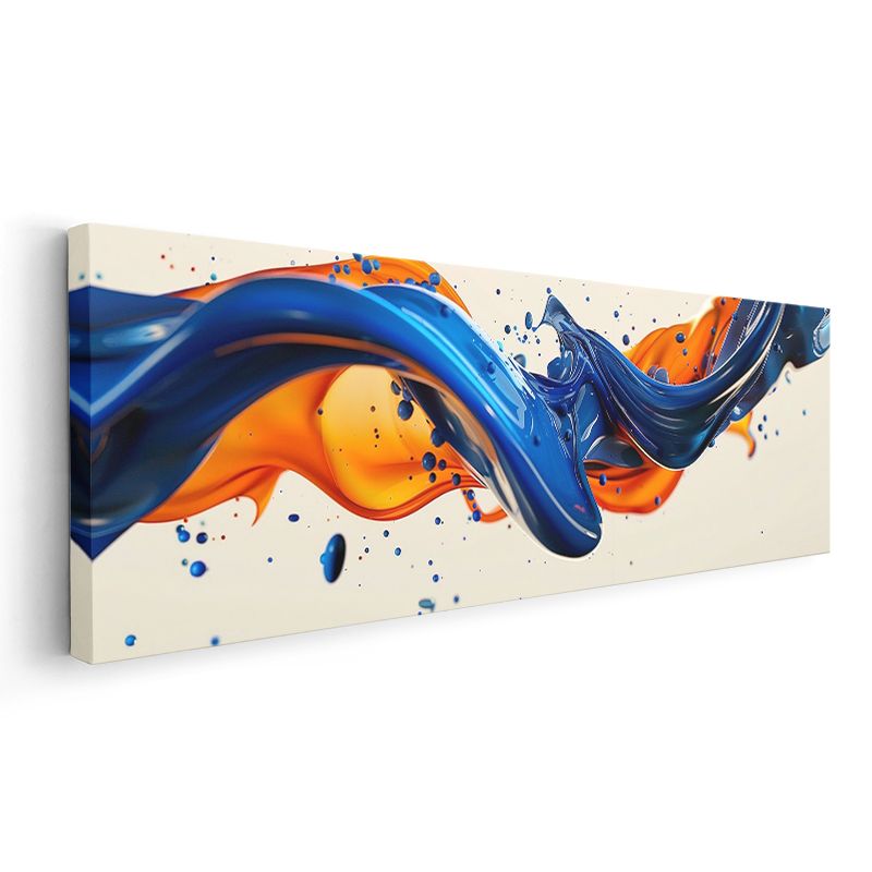 Mavi Turuncu Dalga - Dinamik Akışkan Boya Sanatı Kanvas Tablo