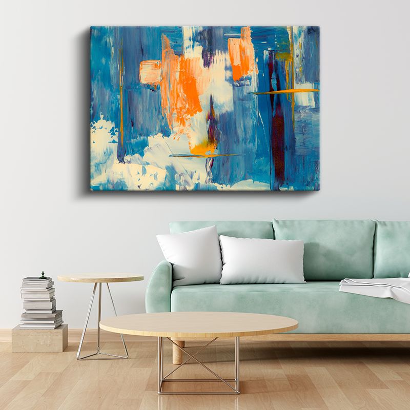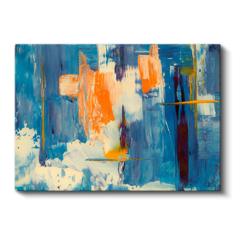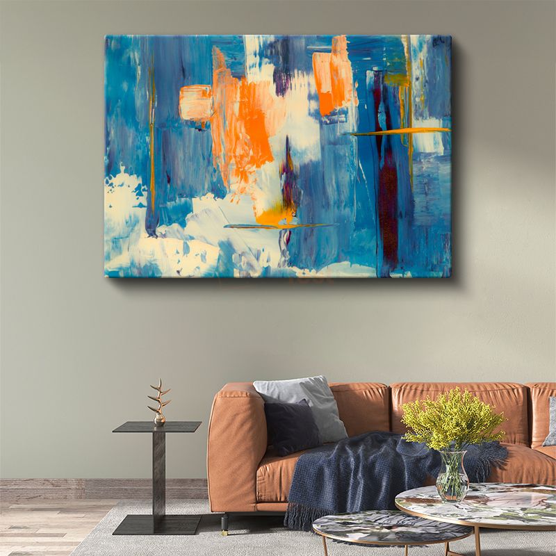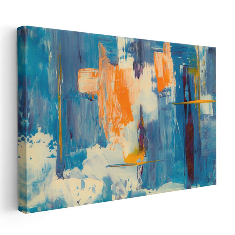 Mavi Turuncu Kontrast - Modern Fırça Darbeleri Kanvas Tablo