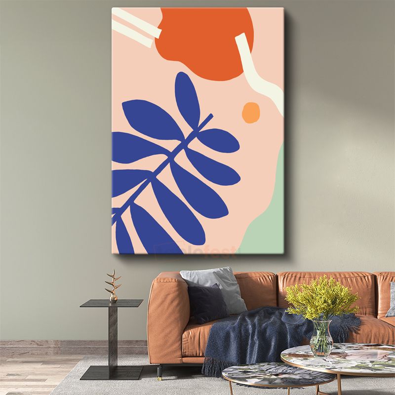 Mavi Yaprak - Geometrik Renk Blokları Kanvas Tablo