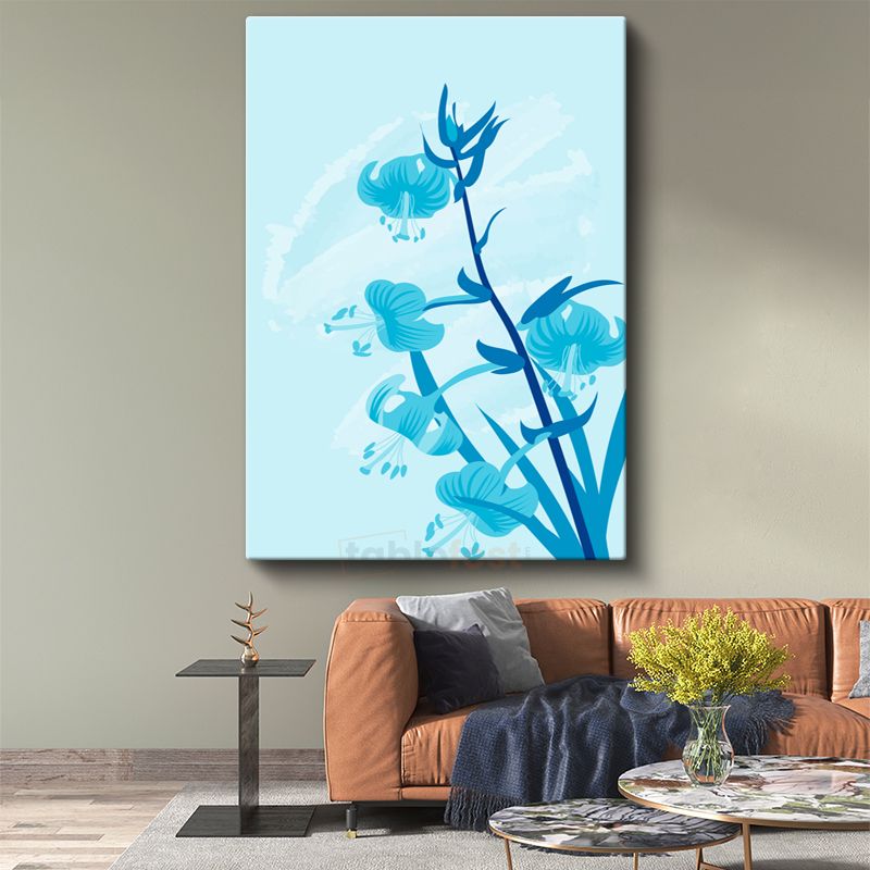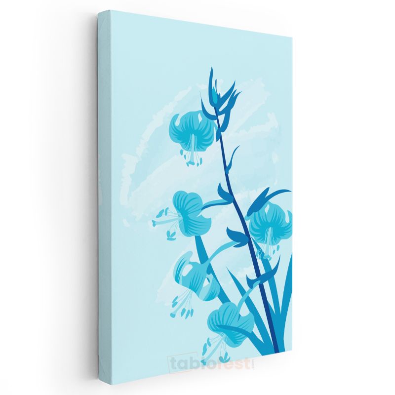 Mavi Zambaklar - Turkuaz Tonlarında Zarif Çiçek Siluetleri Kanvas Tablo