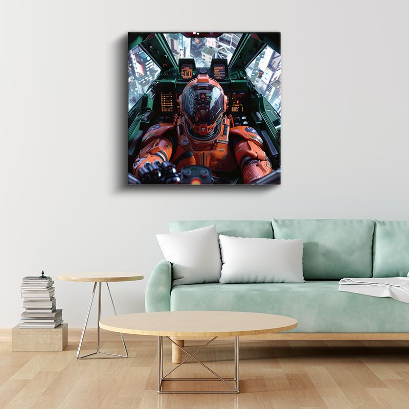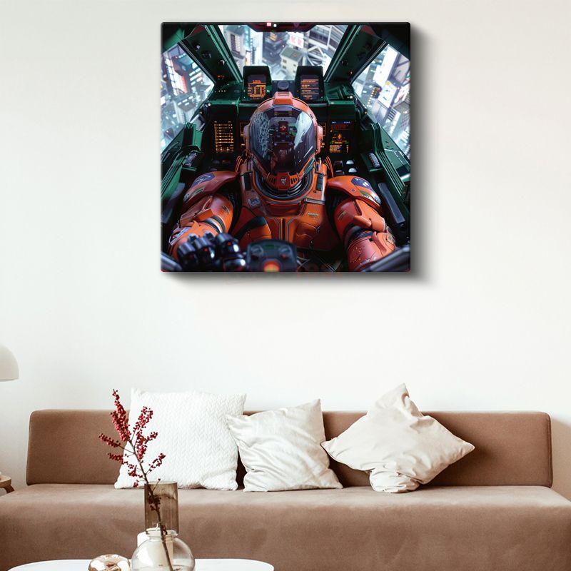 Mecha Pilot - Futuristik Şehir Kokpiti Anime Kanvas Tablo